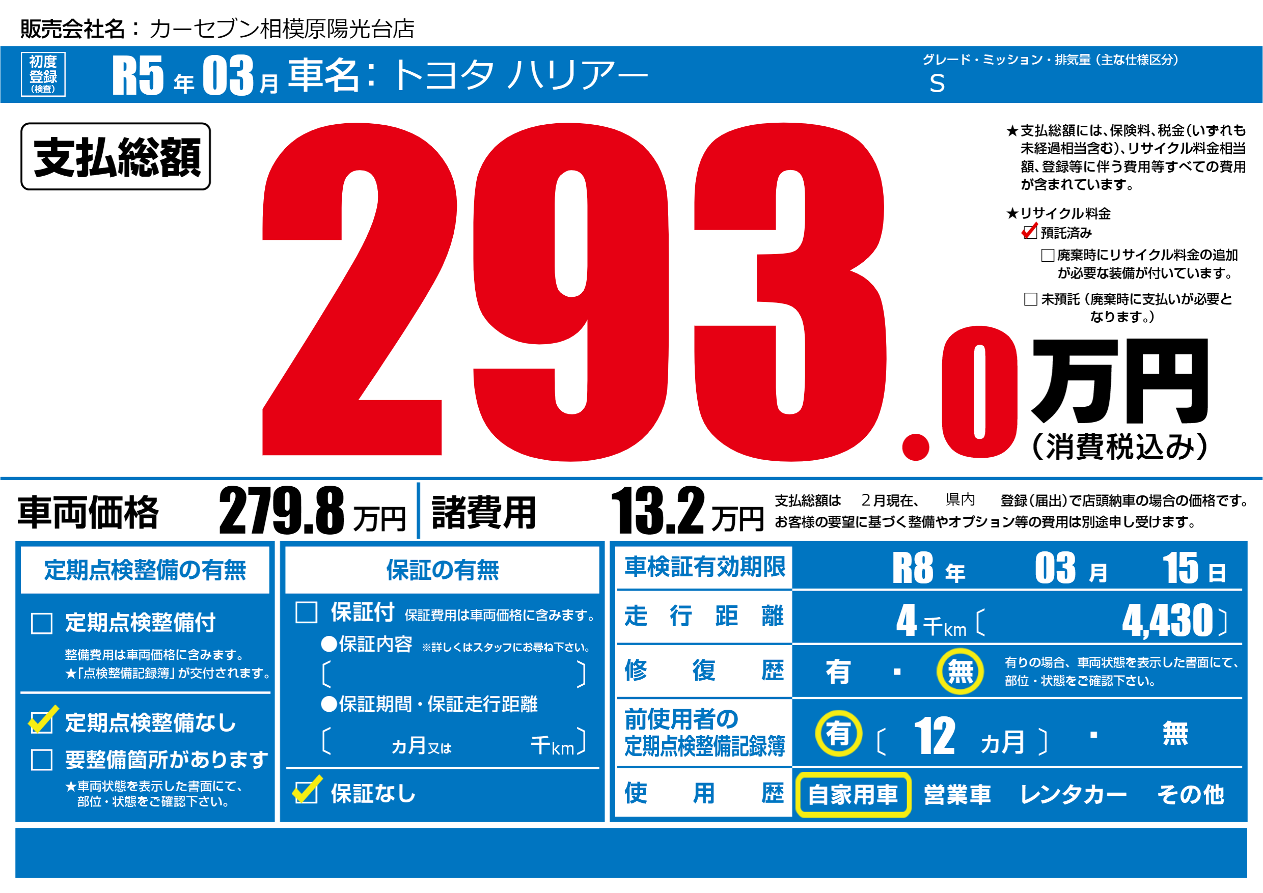 | 車検制限 | R8年 03月 15日 | ||