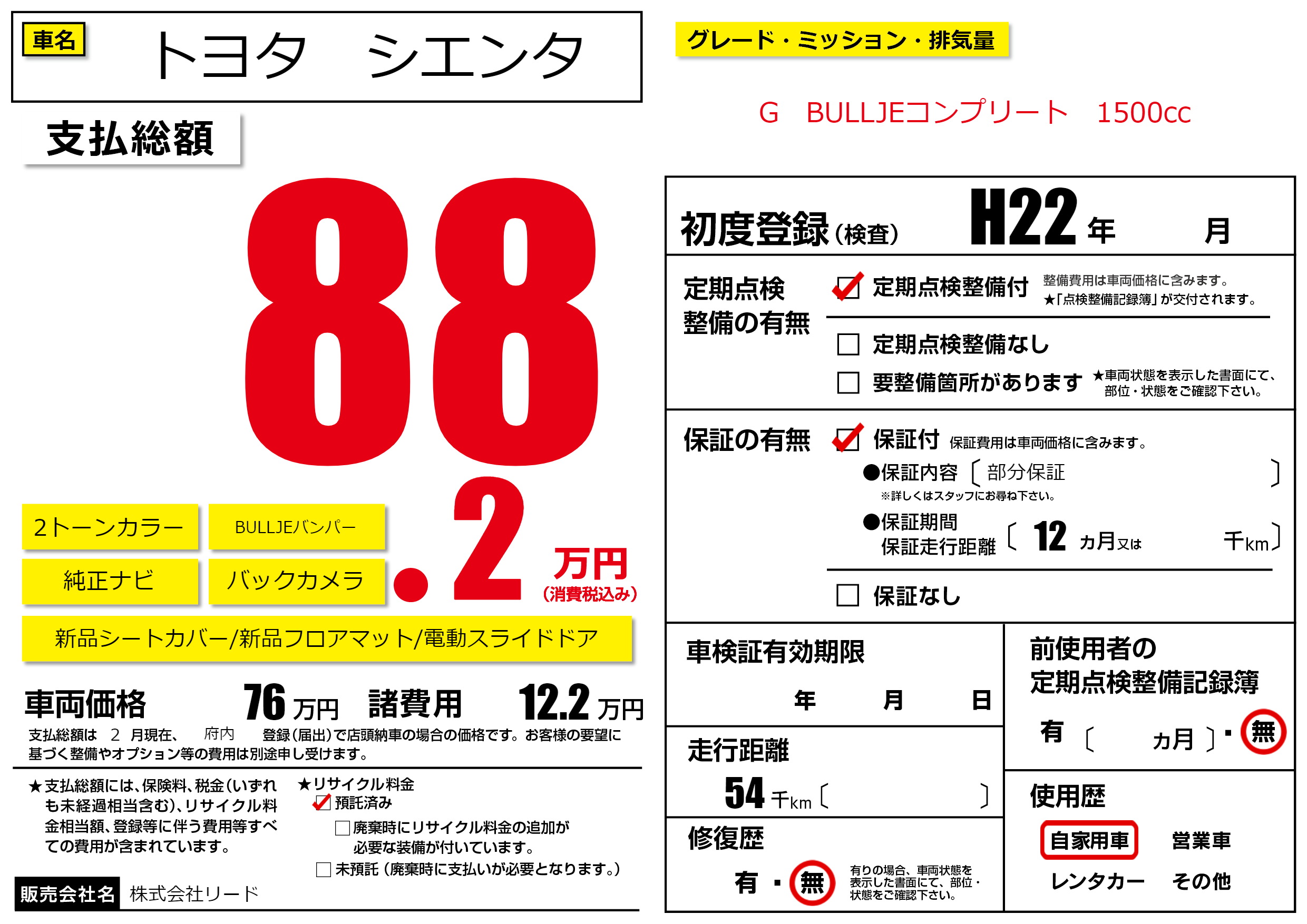 | 車検制限 | - 年 - 月 - 日 | ||