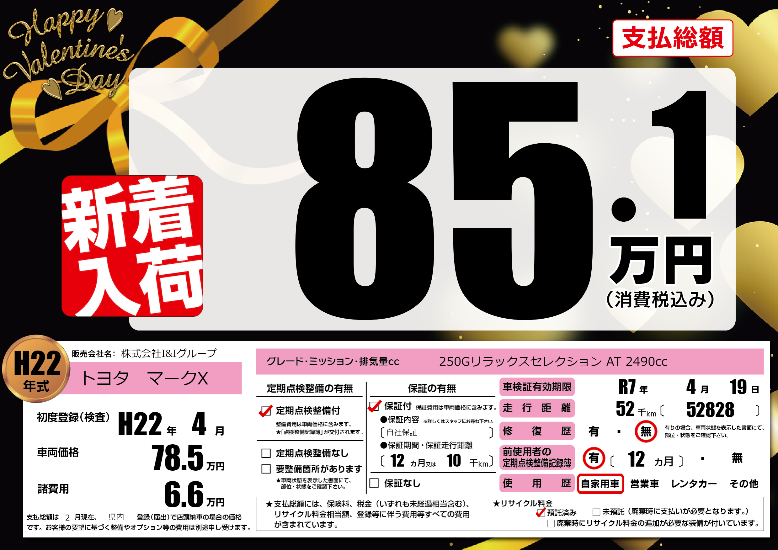 | 車名 | トヨタ マークX | グレード ミッション 排気量 |