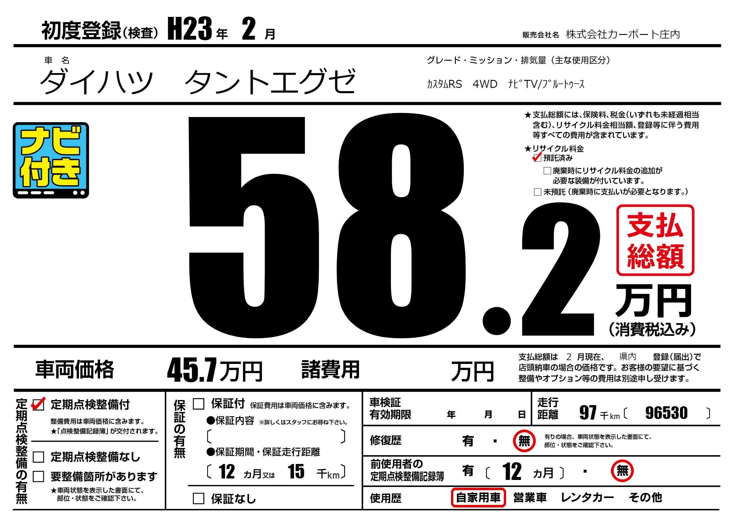 | 定期点検整備 | 定期点検整備あり | ||