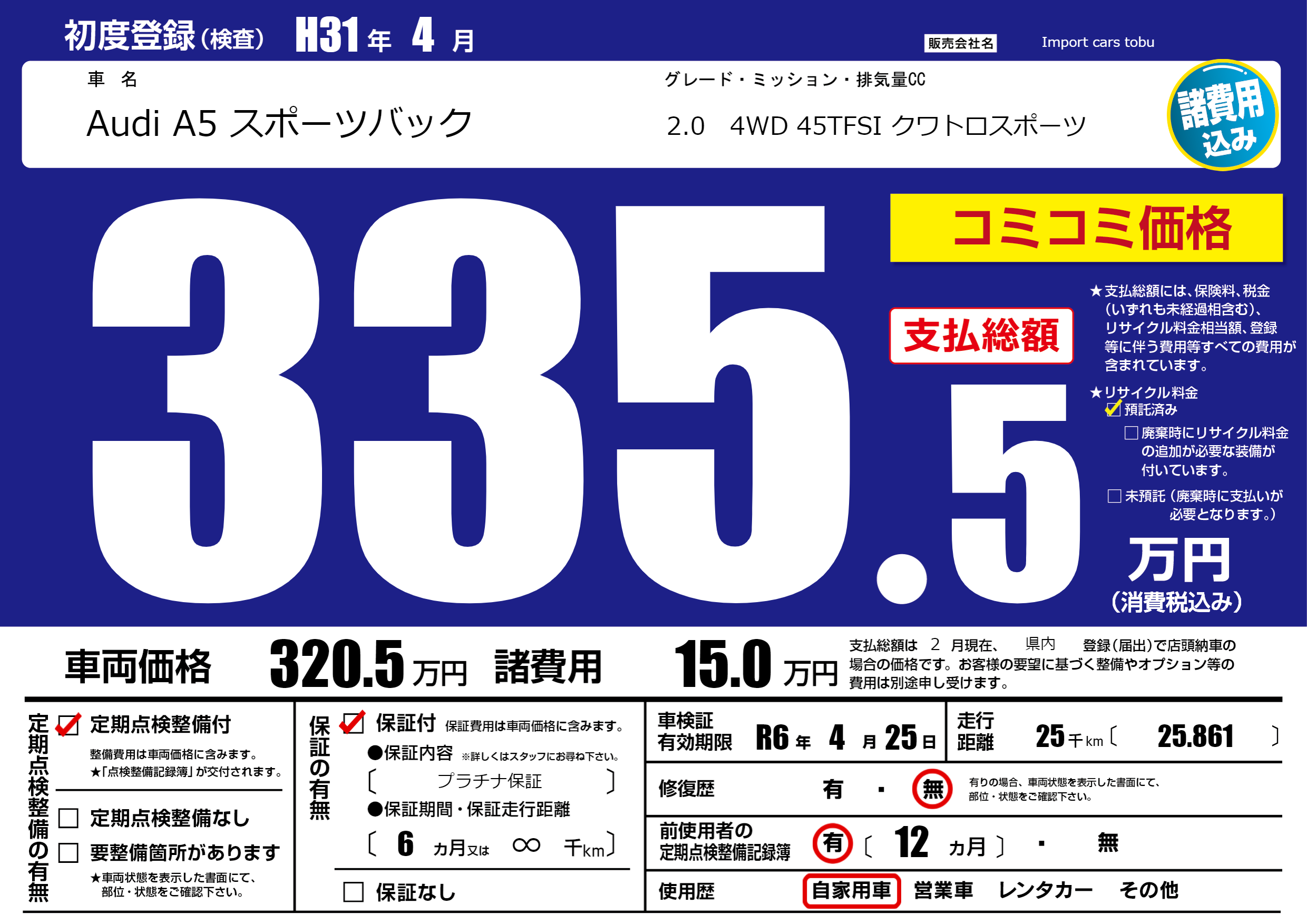 | 車検制限 | R6年 4月 25日 | ||