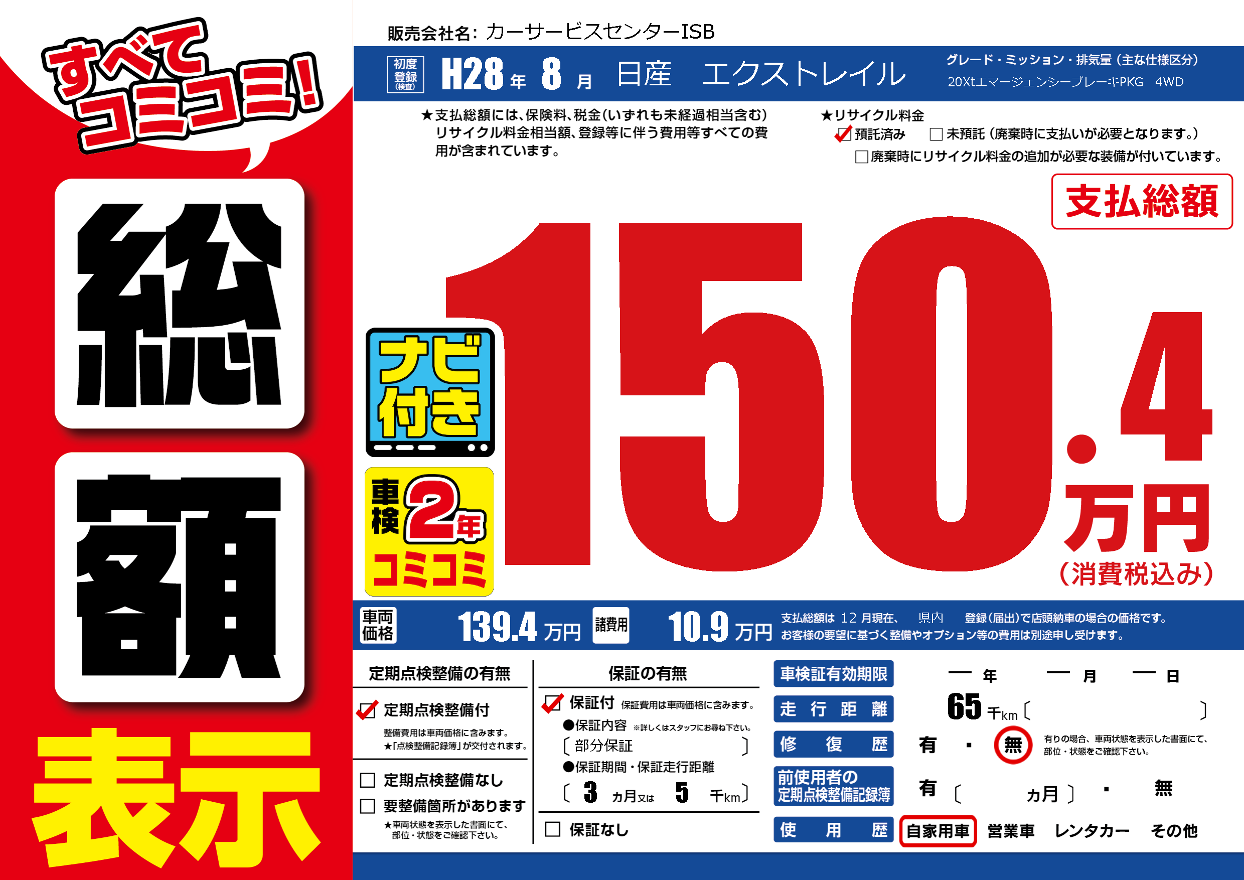 保証付き 保証内容(部分保証) 3ヶ月または(5)千kmまで |