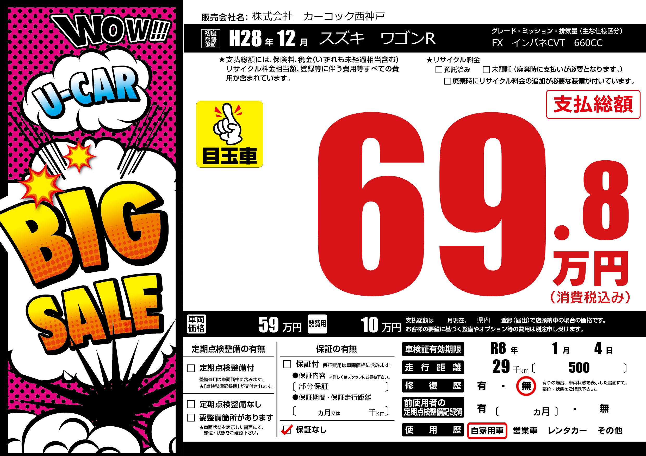 | 車名 | スズキ ワゴンR | グレード ミッション 排気量 |