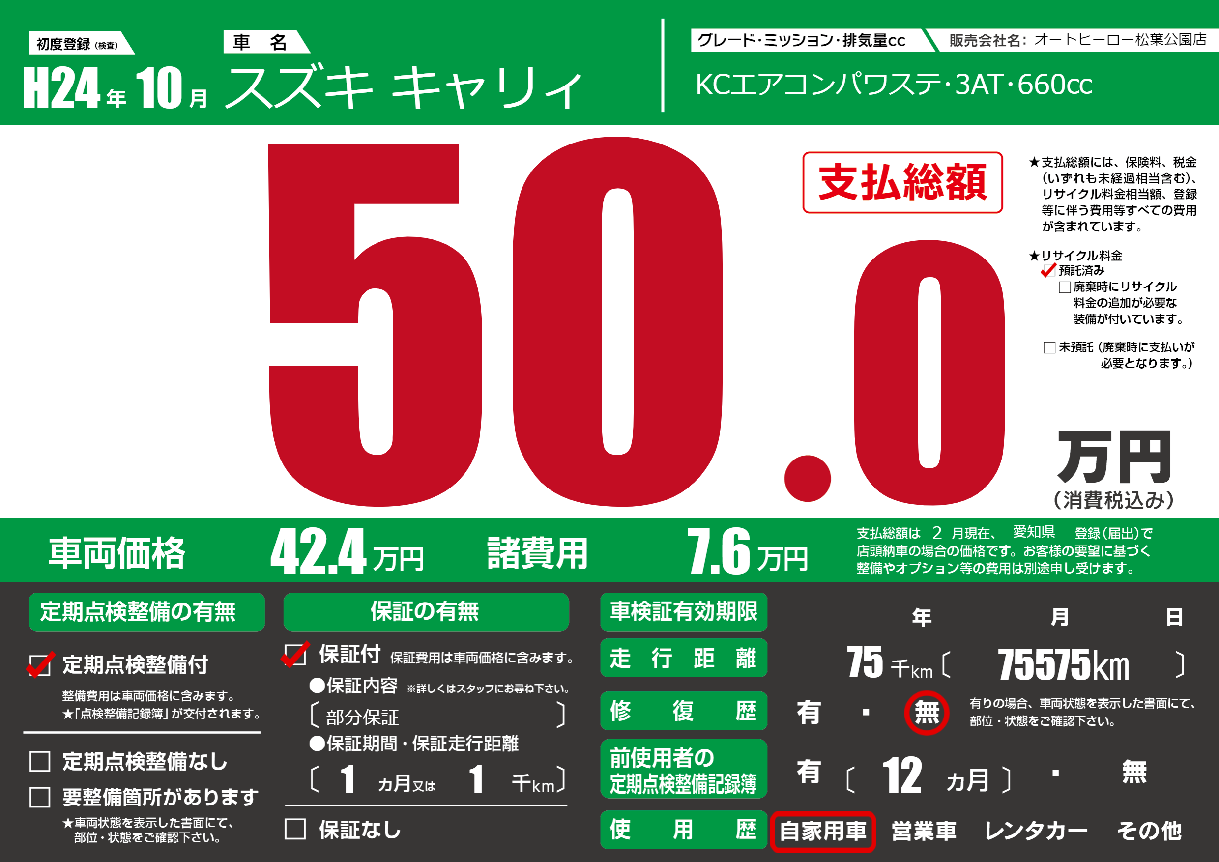 | 走行キロ | 7.5万km | 初年度登録 | H24年10月 |