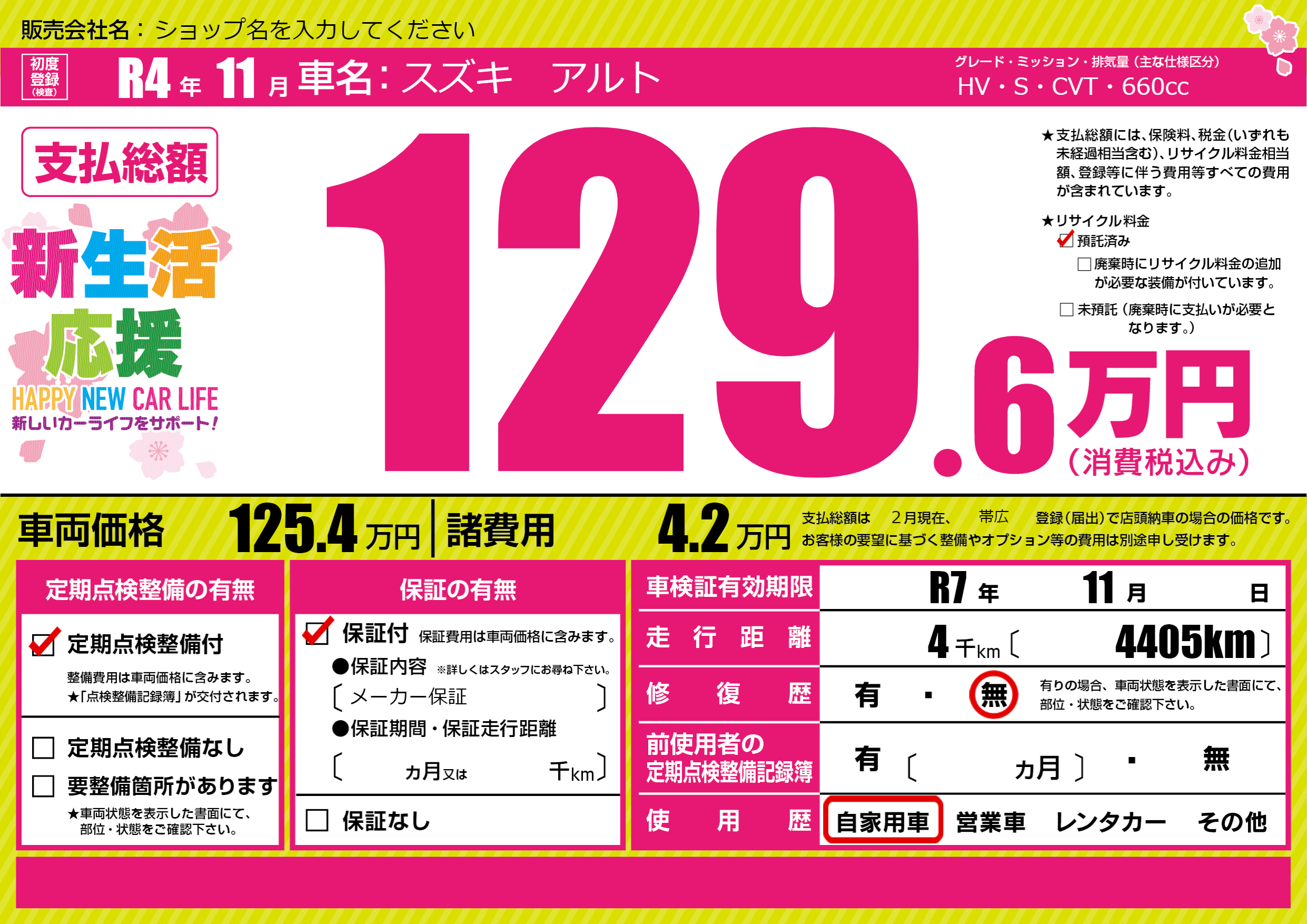 | 車検制限 | R7年 11月 - 日 | ||