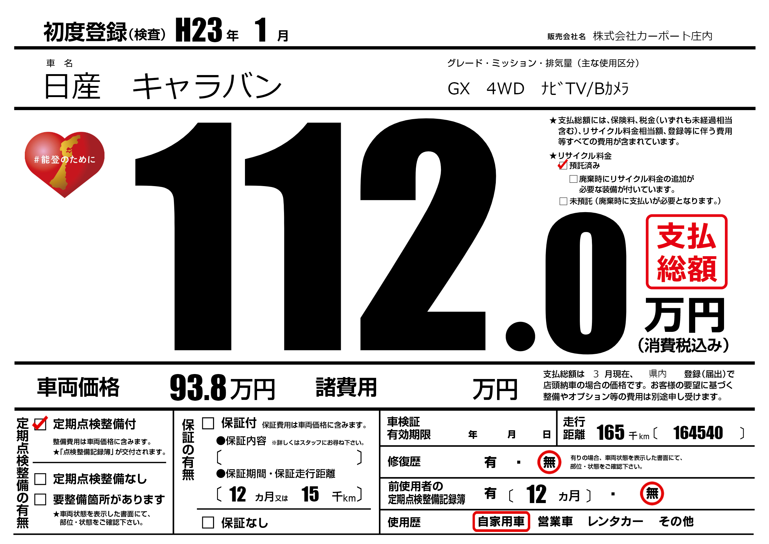 | 定期点検整備 | 定期点検整備あり | ||