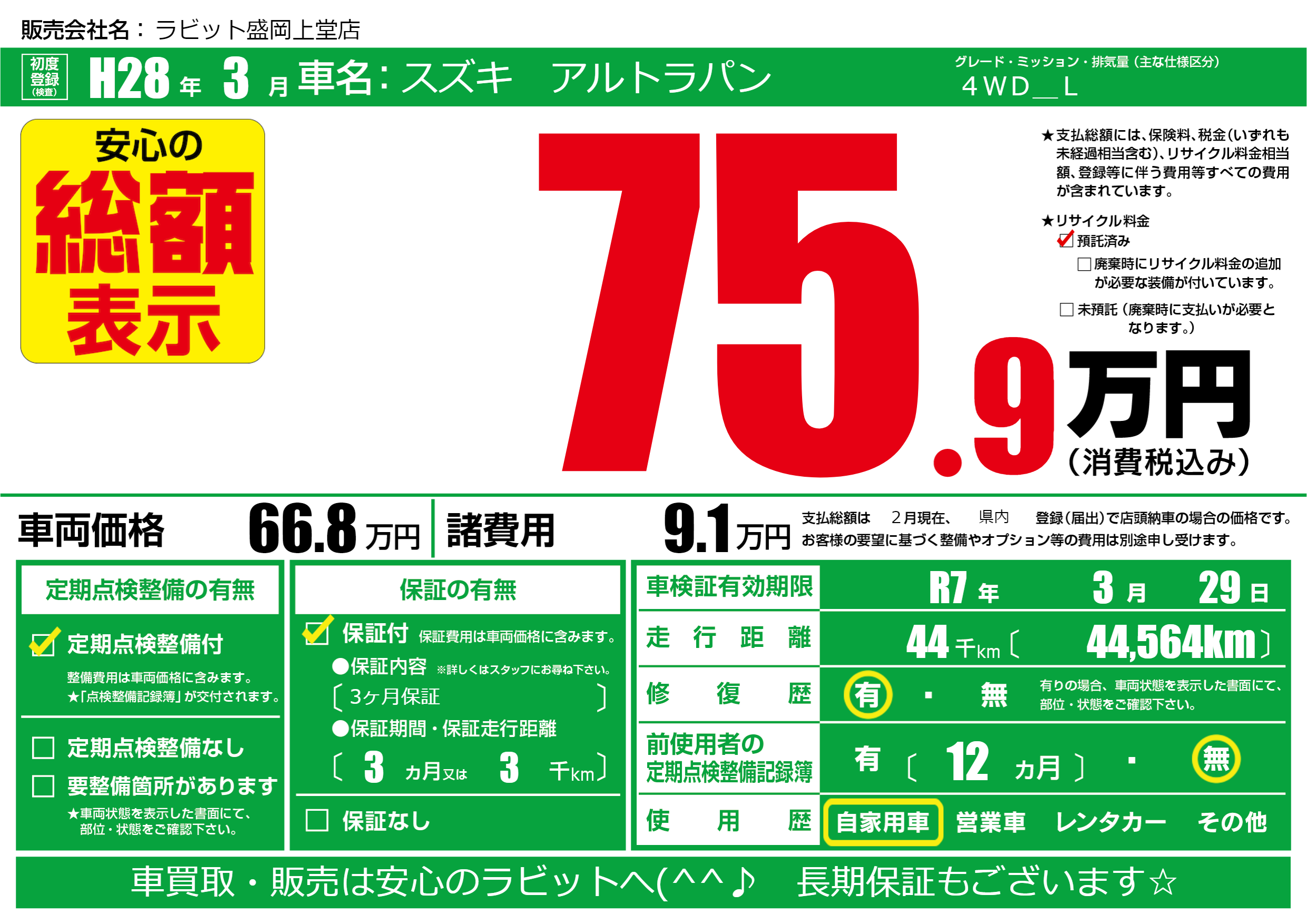 保証付き 保証内容(3ヶ月保証) 3ヶ月または(3)千kmまで |