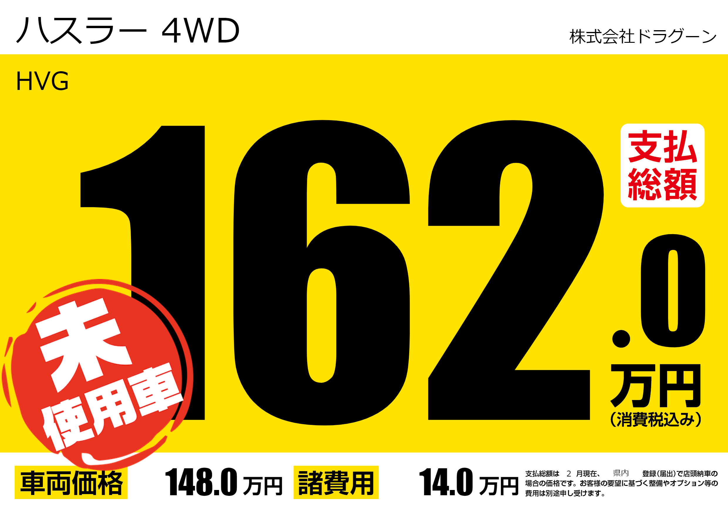 | 車名 | ハスラー 4WD | グレード ミッション 排気量 |