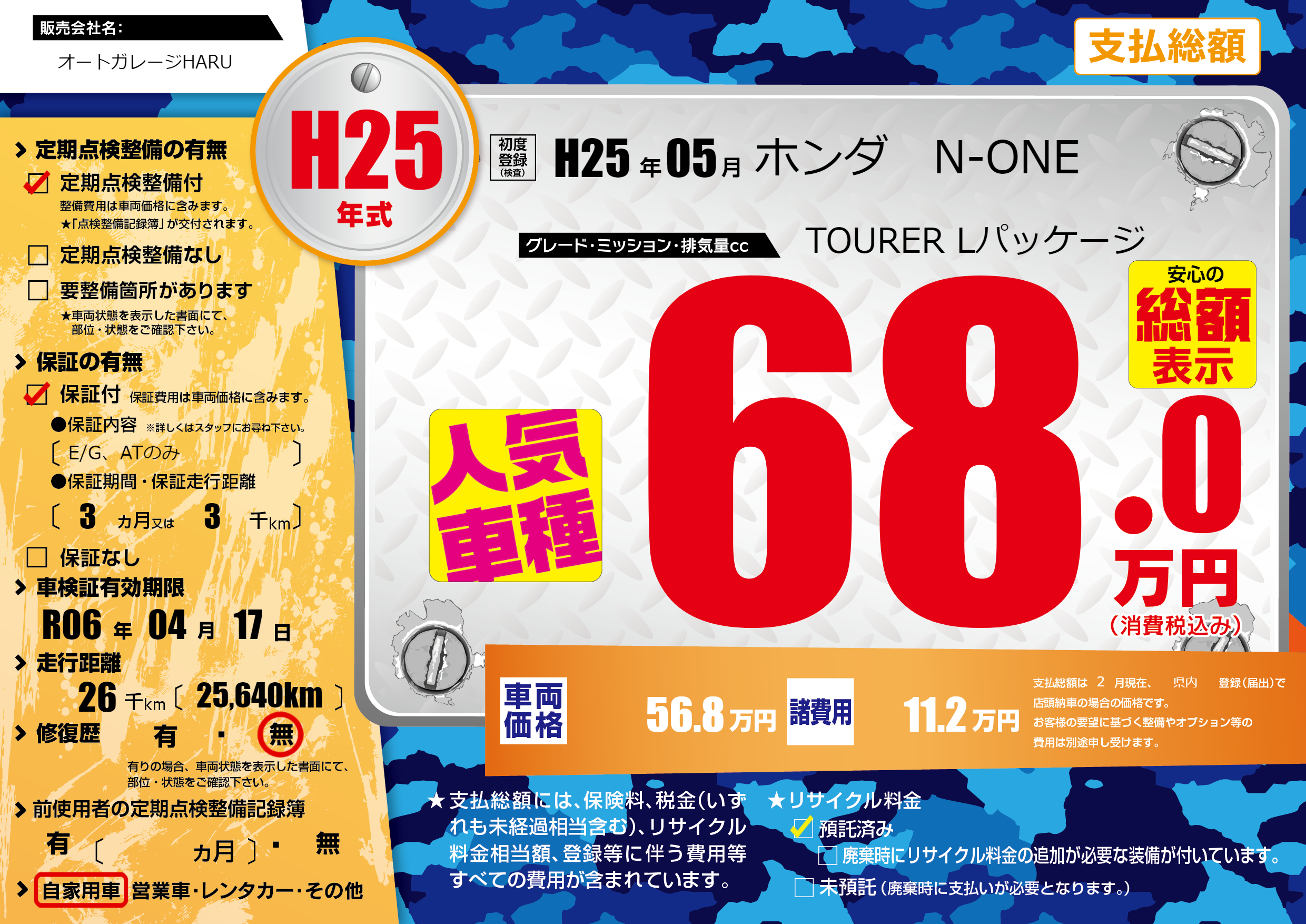| 車検制限 | R06年 04月 17日 | ||