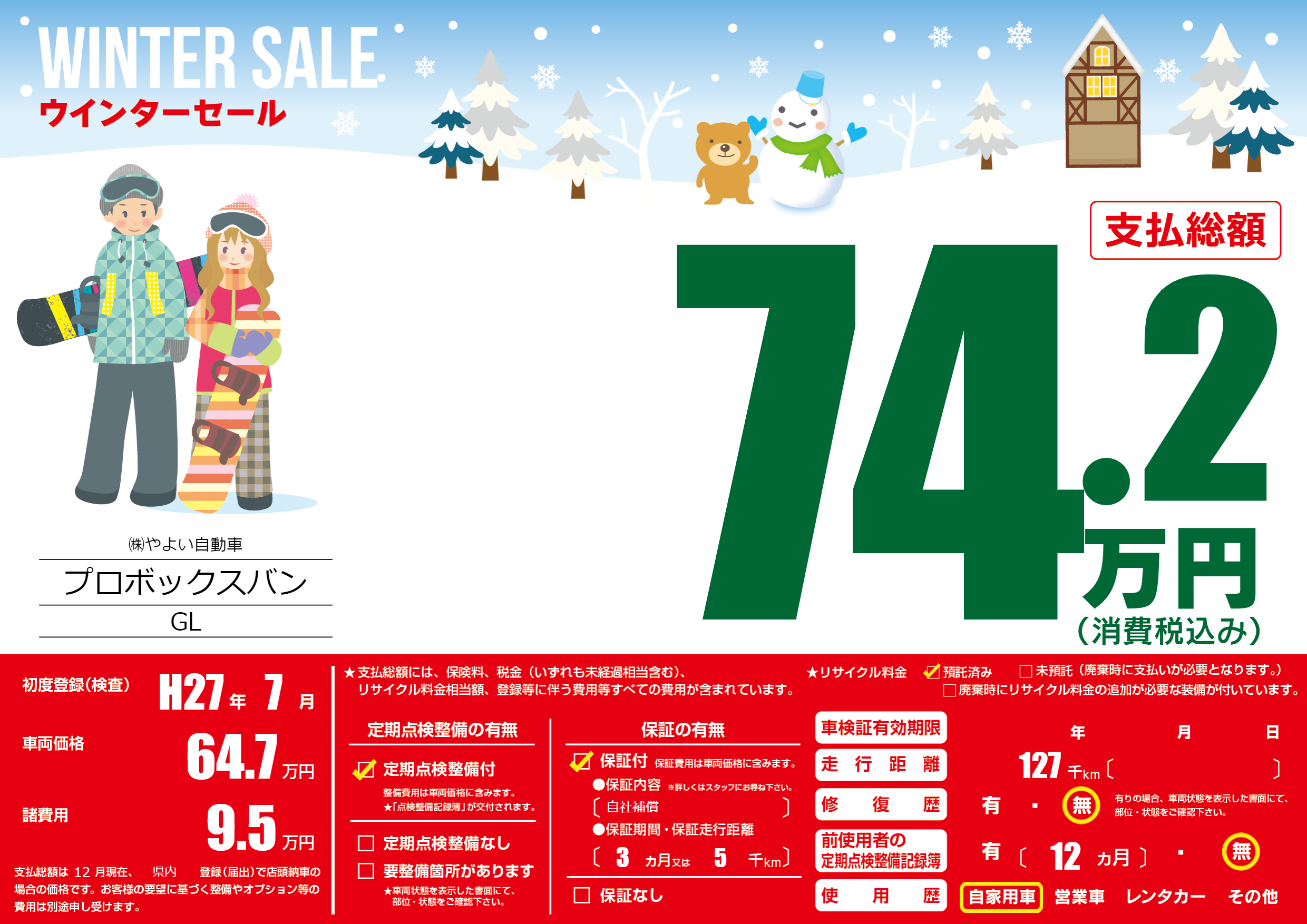 | 走行キロ | 12.7万km | 初年度登録 | H27年7月 |