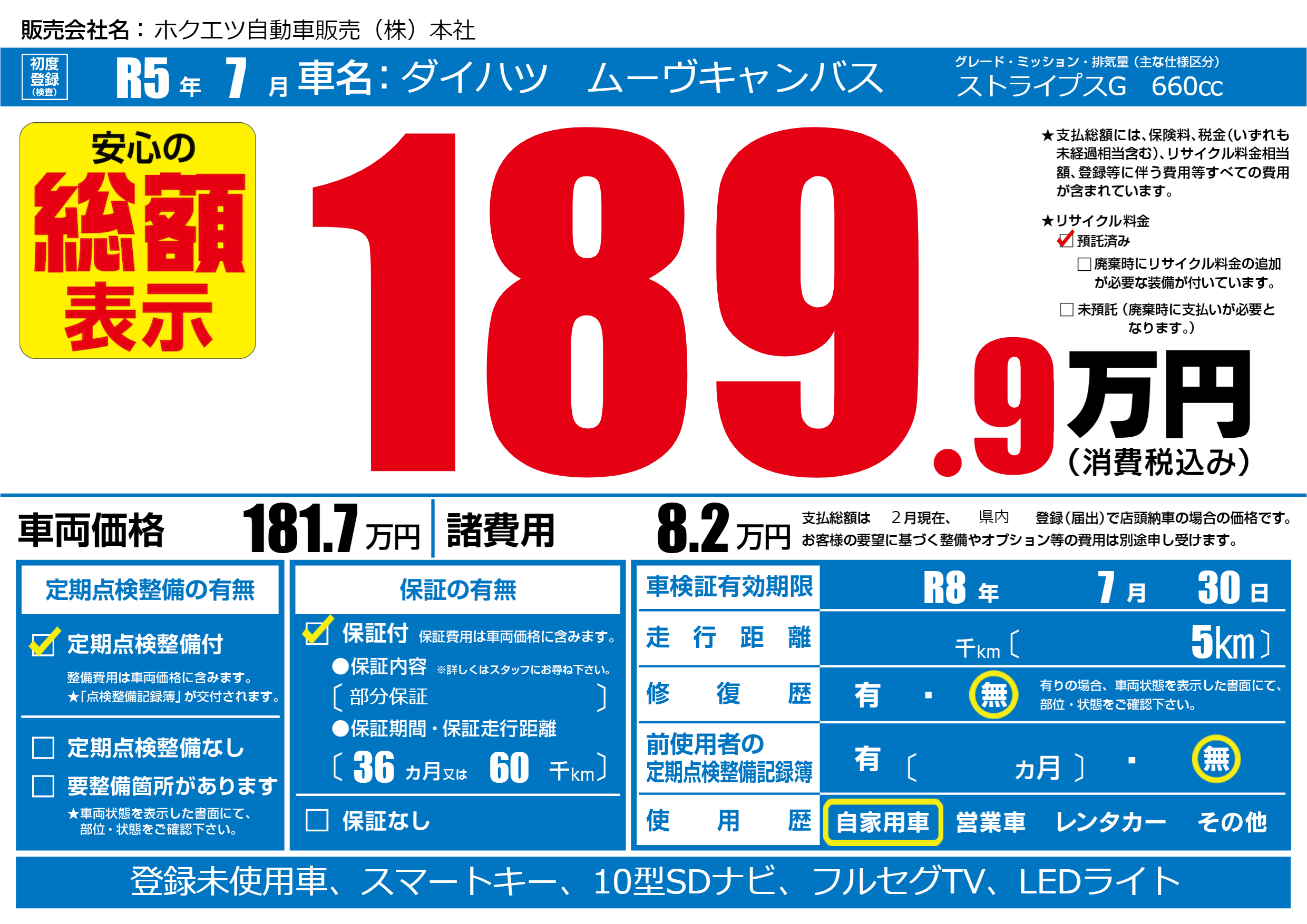 | 走行キロ | - | 初年度登録 | R5年7月 |