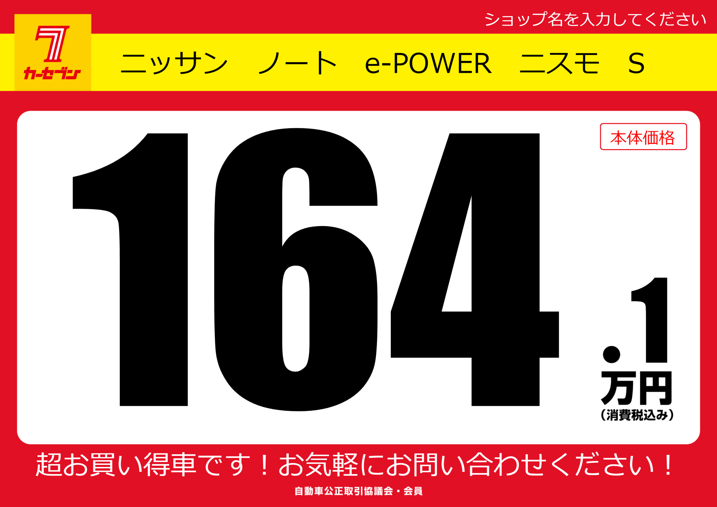 | 車名 | ニッサン ノート e-POWER ニスモ S | グレード ミッション 排気量 |
