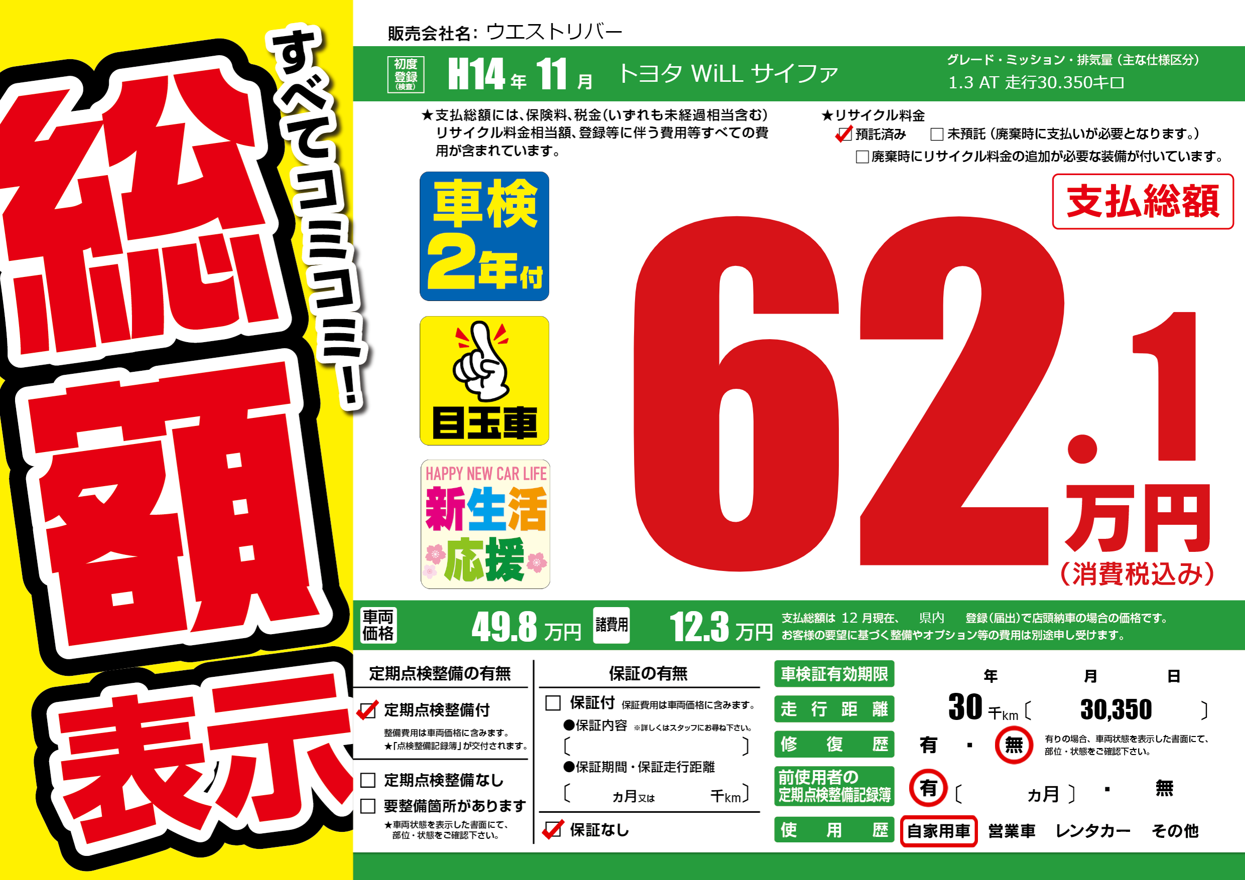 | 定期点検整備 | 定期点検整備あり | ||