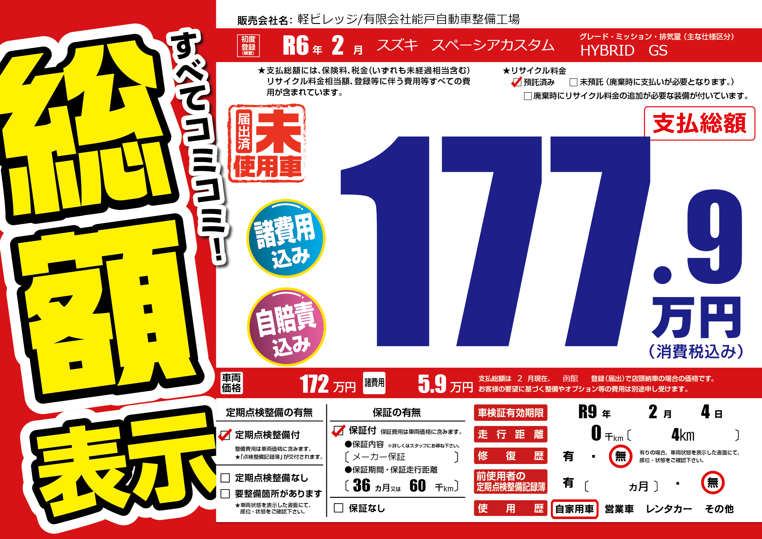 なし | 車検制限 | R9年2月4月 |