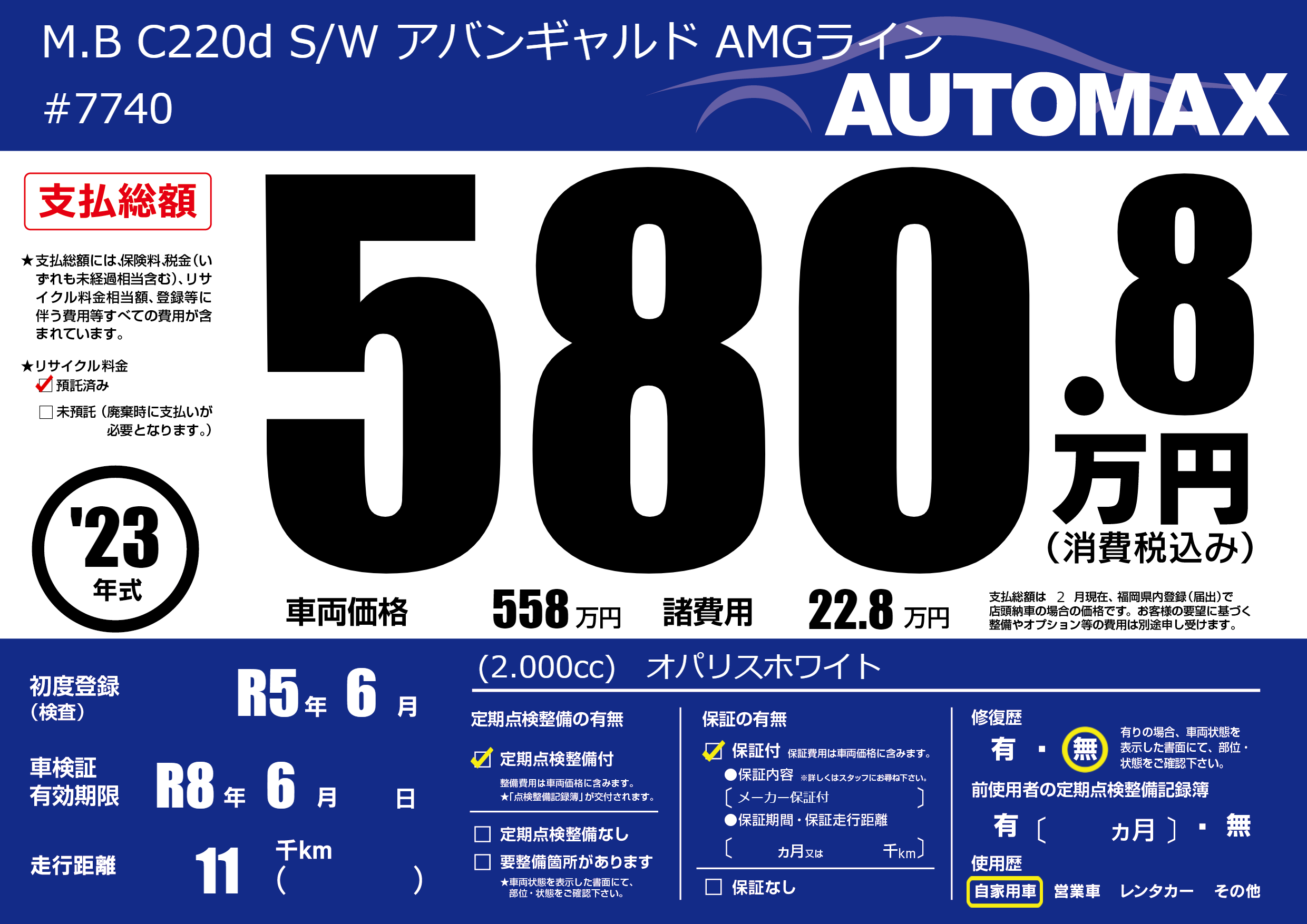 なし | 車検制限 | R8年6月---月 |