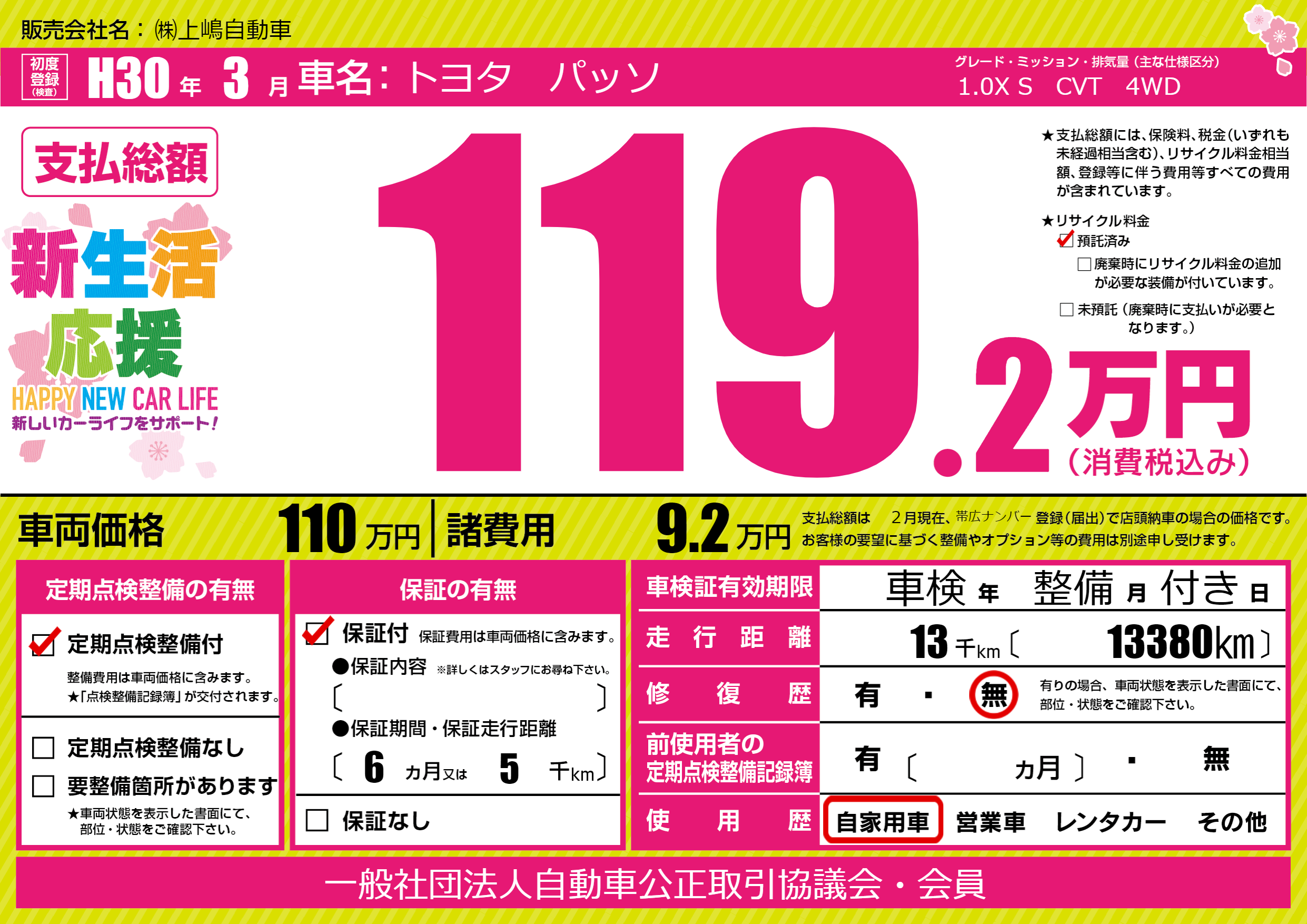 | 定期点検整備 | 定期点検整備あり | ||