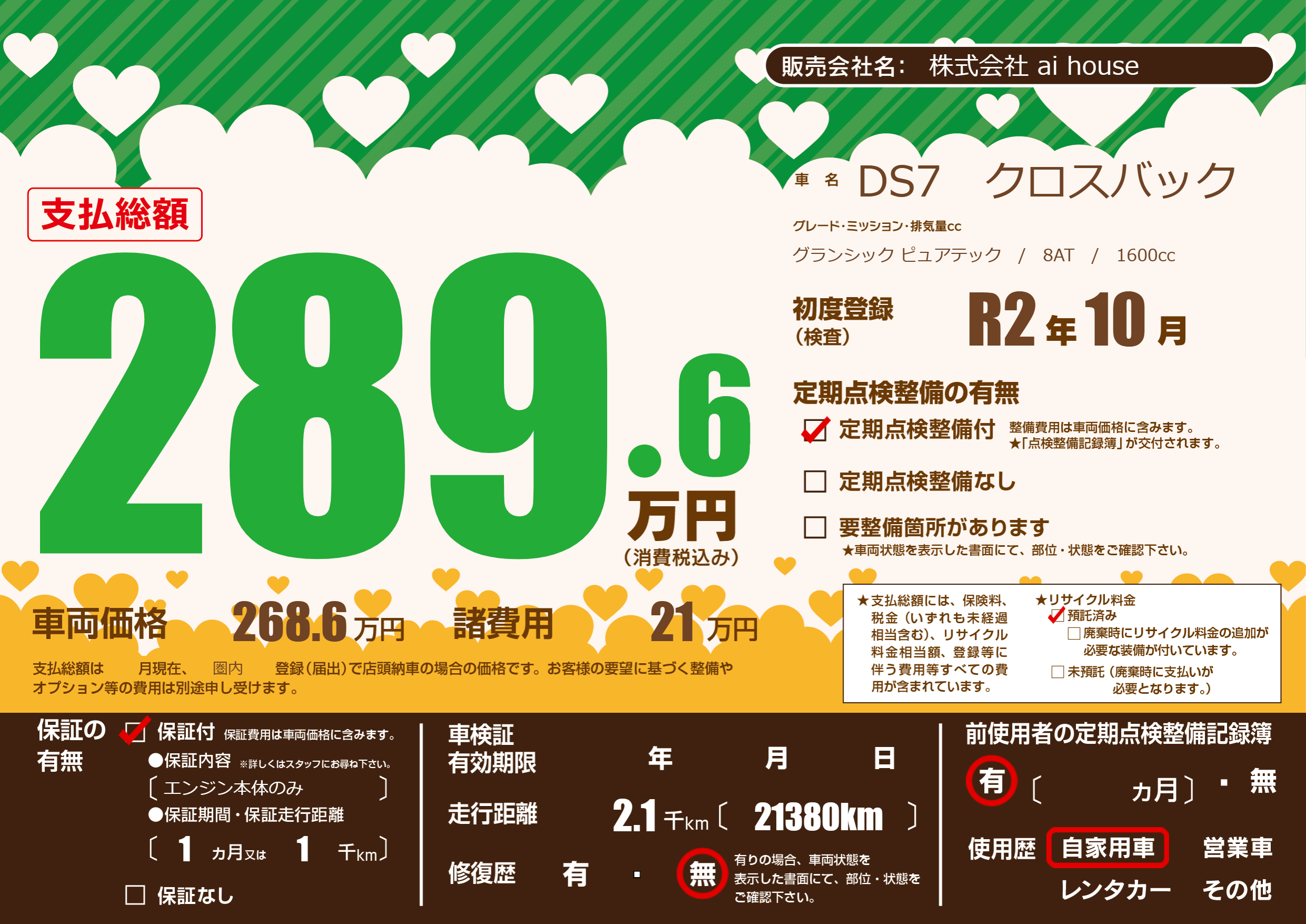 | 定期点検整備 | 定期点検整備あり | ||