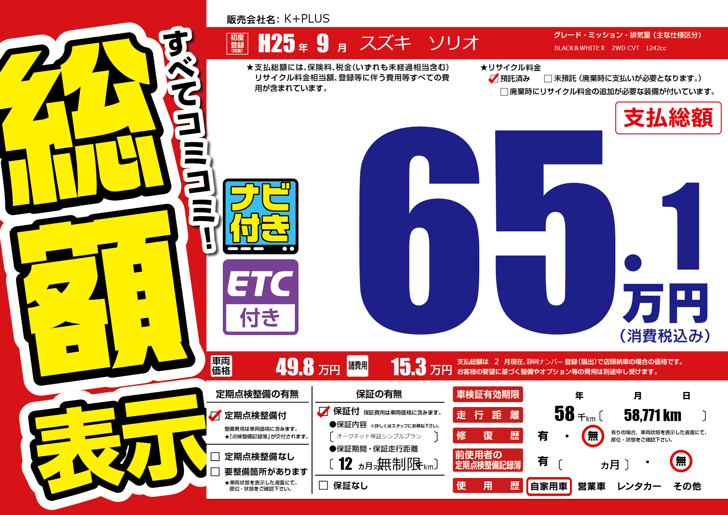 | 走行キロ | 5.8万km | 初年度登録 | H25年9月 |