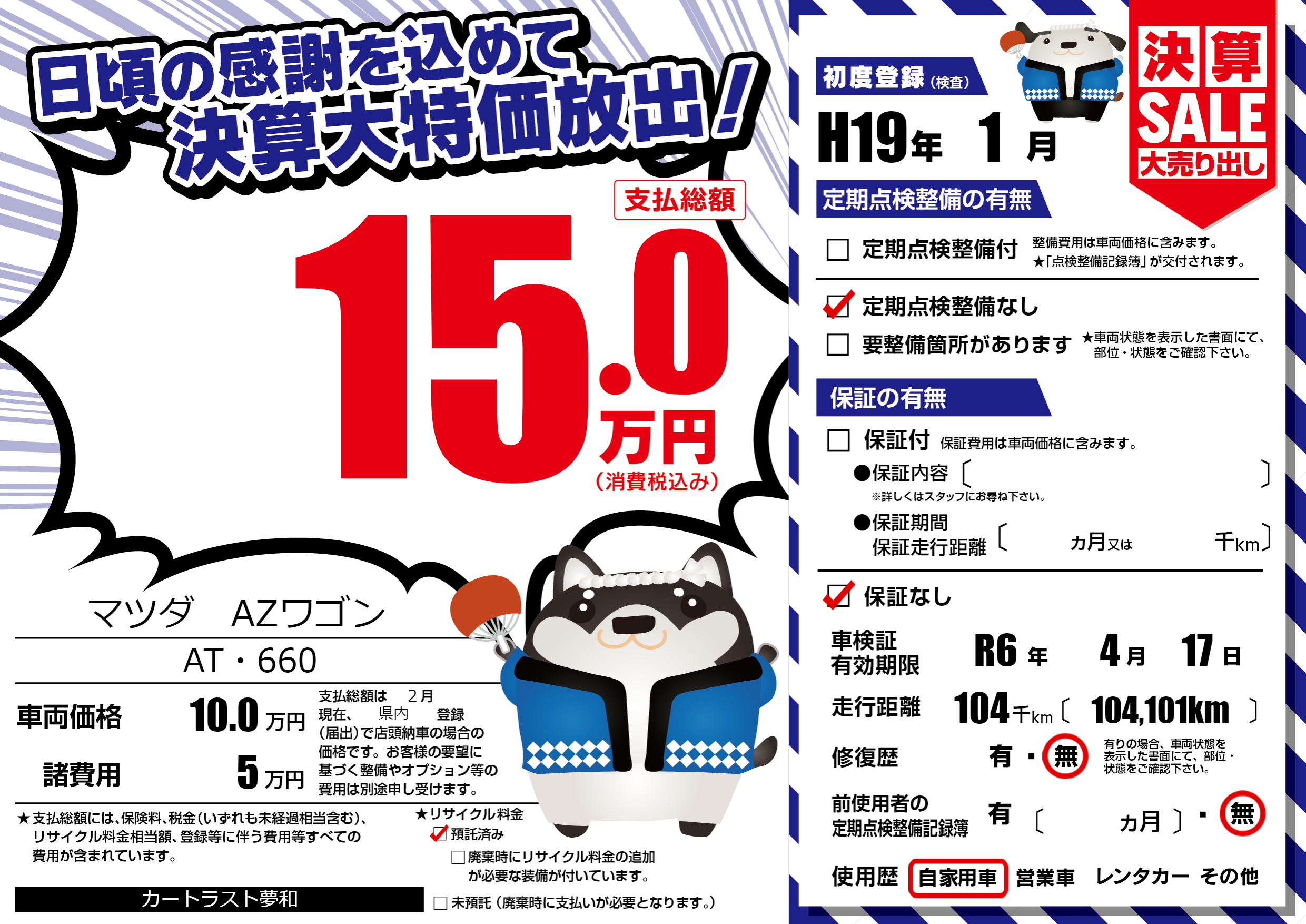 | 車検制限 | R6年 4月 17日 | ||