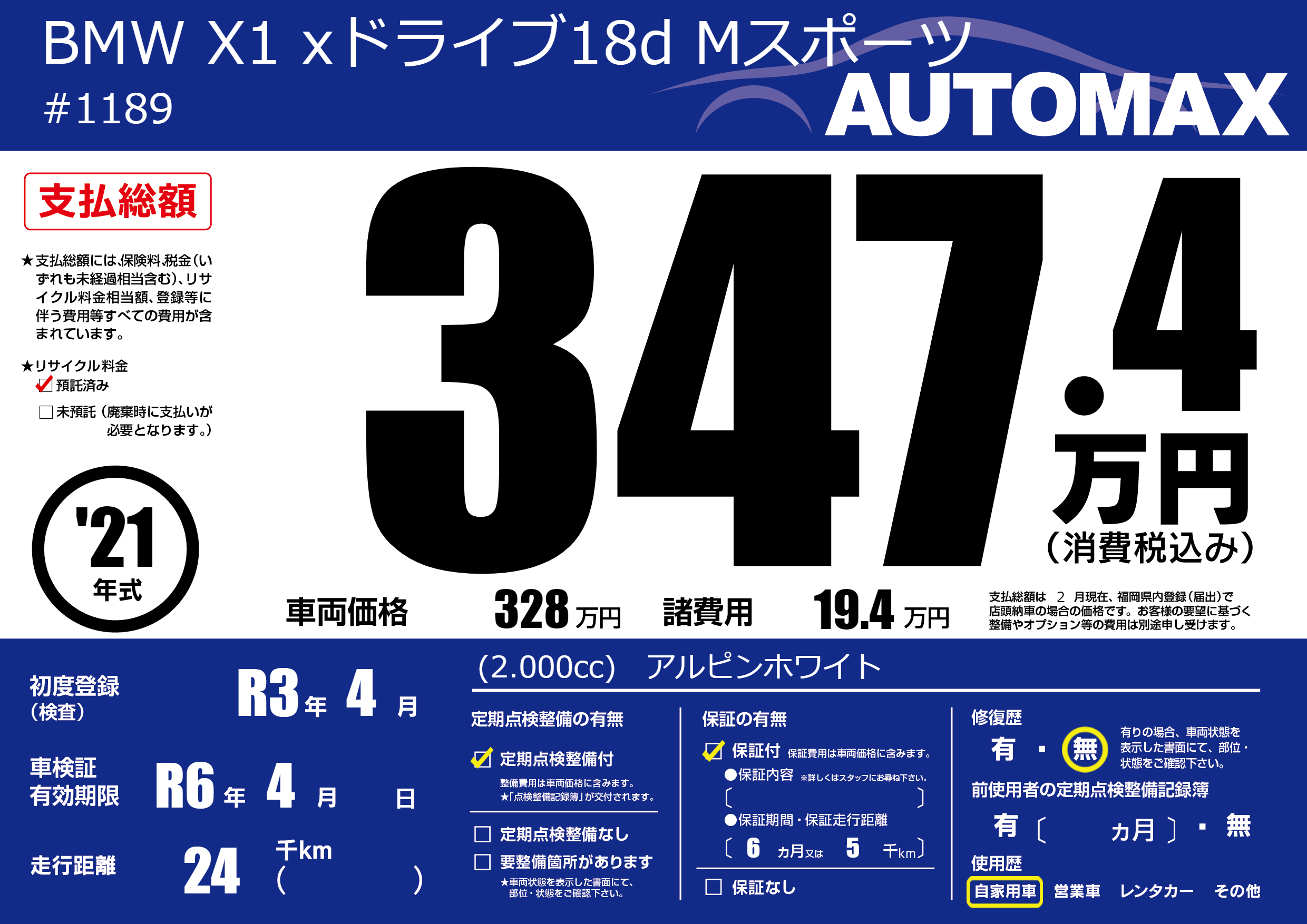 | 車検制限 | R6年 4月 - 日 | ||