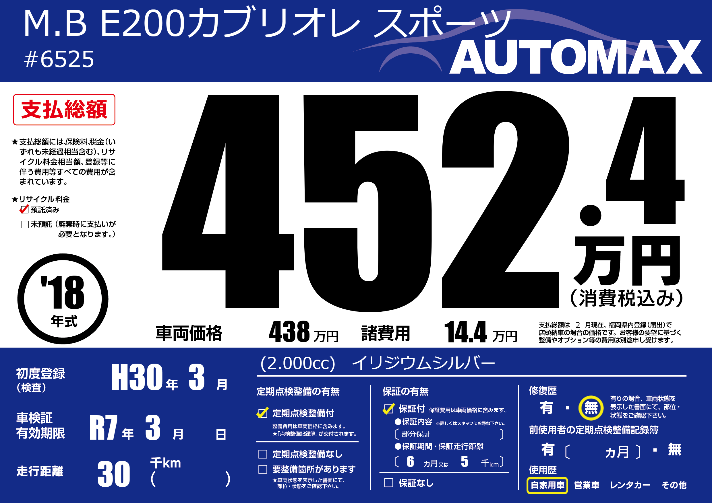| 初年度登録 | H30年3月 | ||