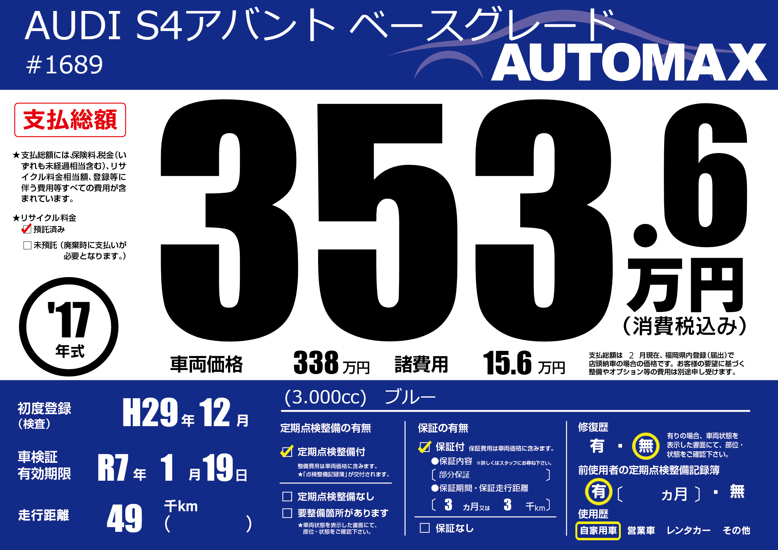 | 車検制限 | R7年 1月 19日 | ||