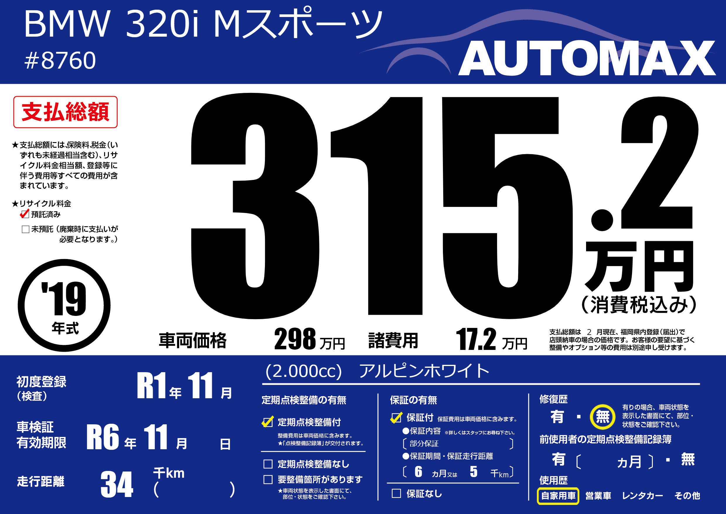 | 定期点検整備 | 定期点検整備あり | ||