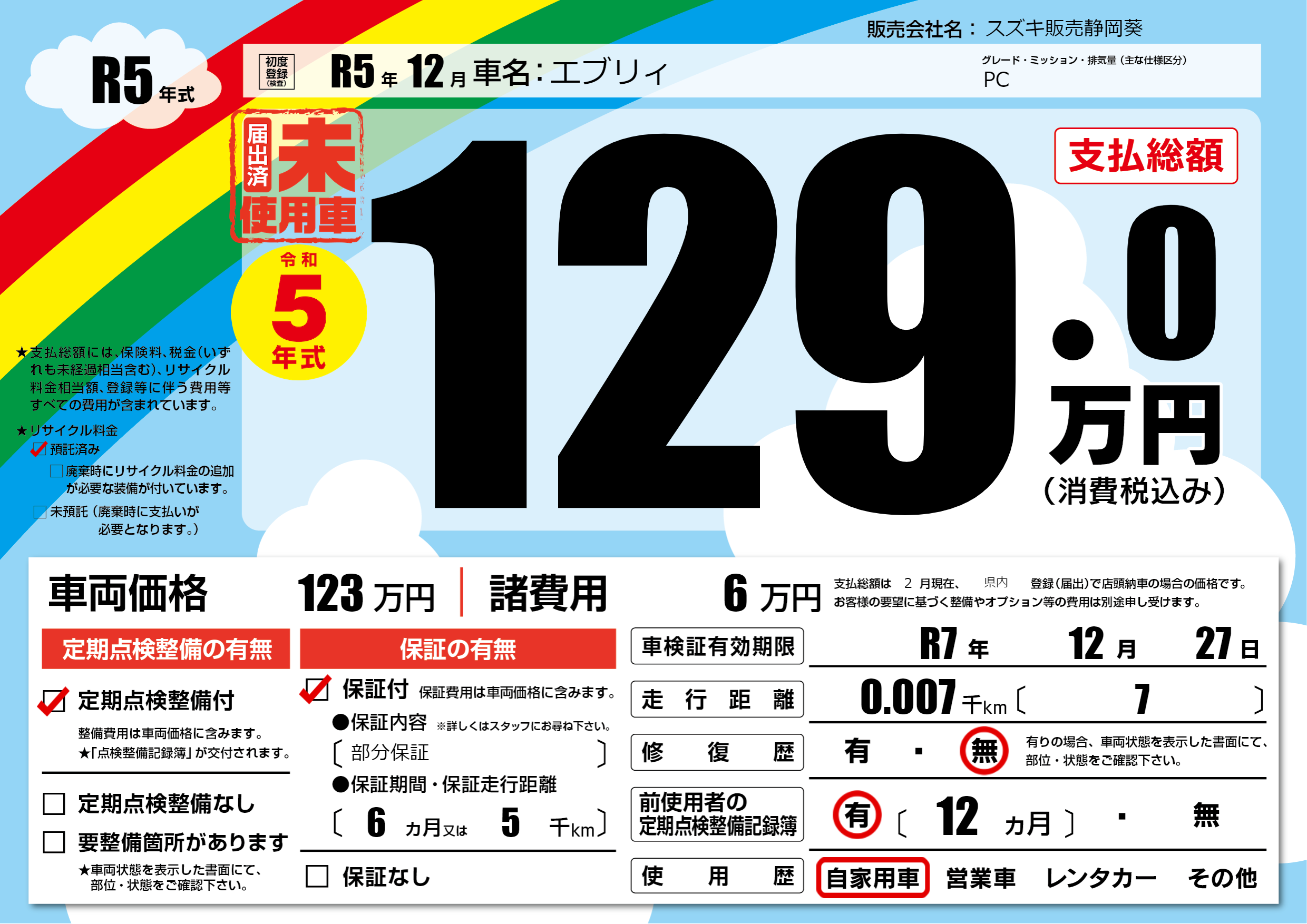 なし | 車検制限 | R7年12月27月 |