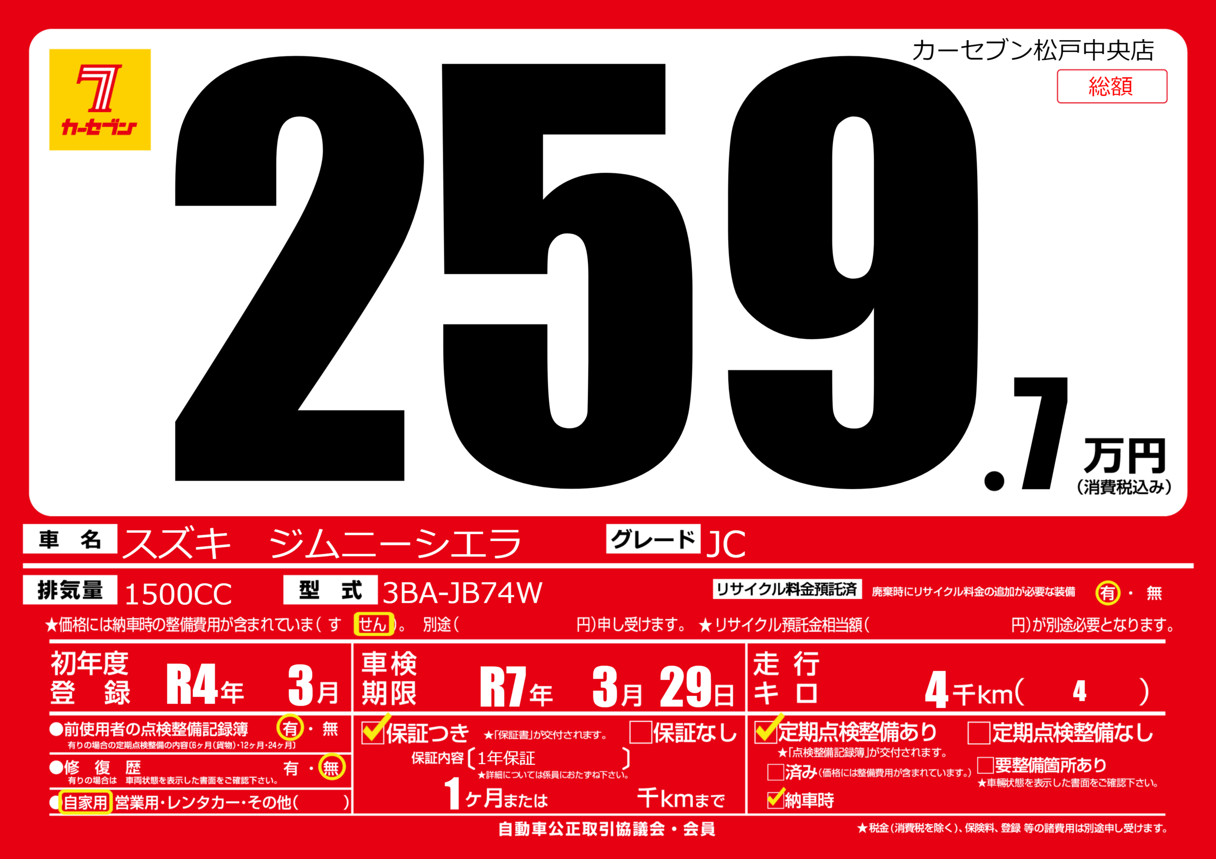 | 車検制限 | R7年 3月 29日 | ||