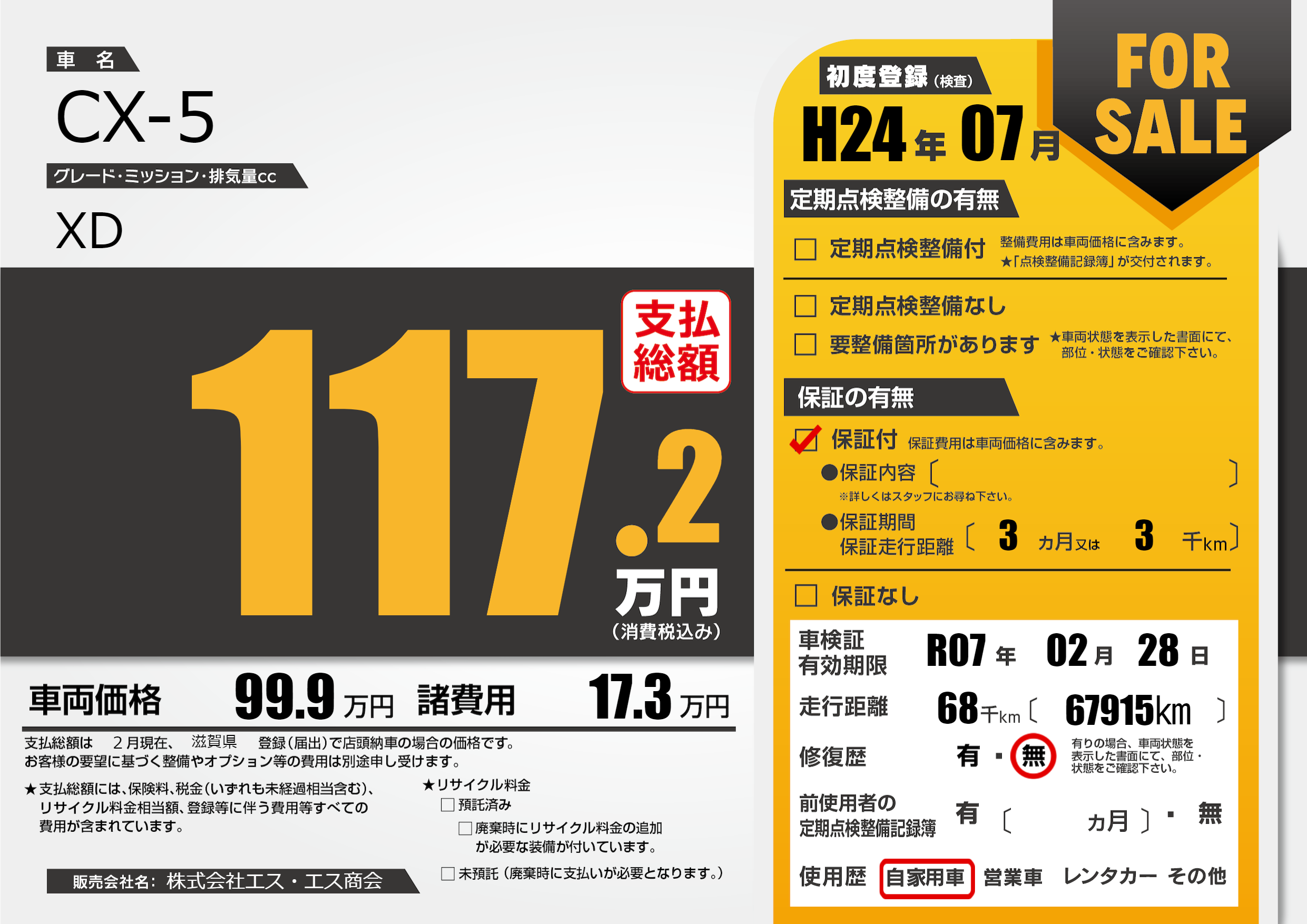| 車名 | CX-5 | グレード ミッション 排気量 |