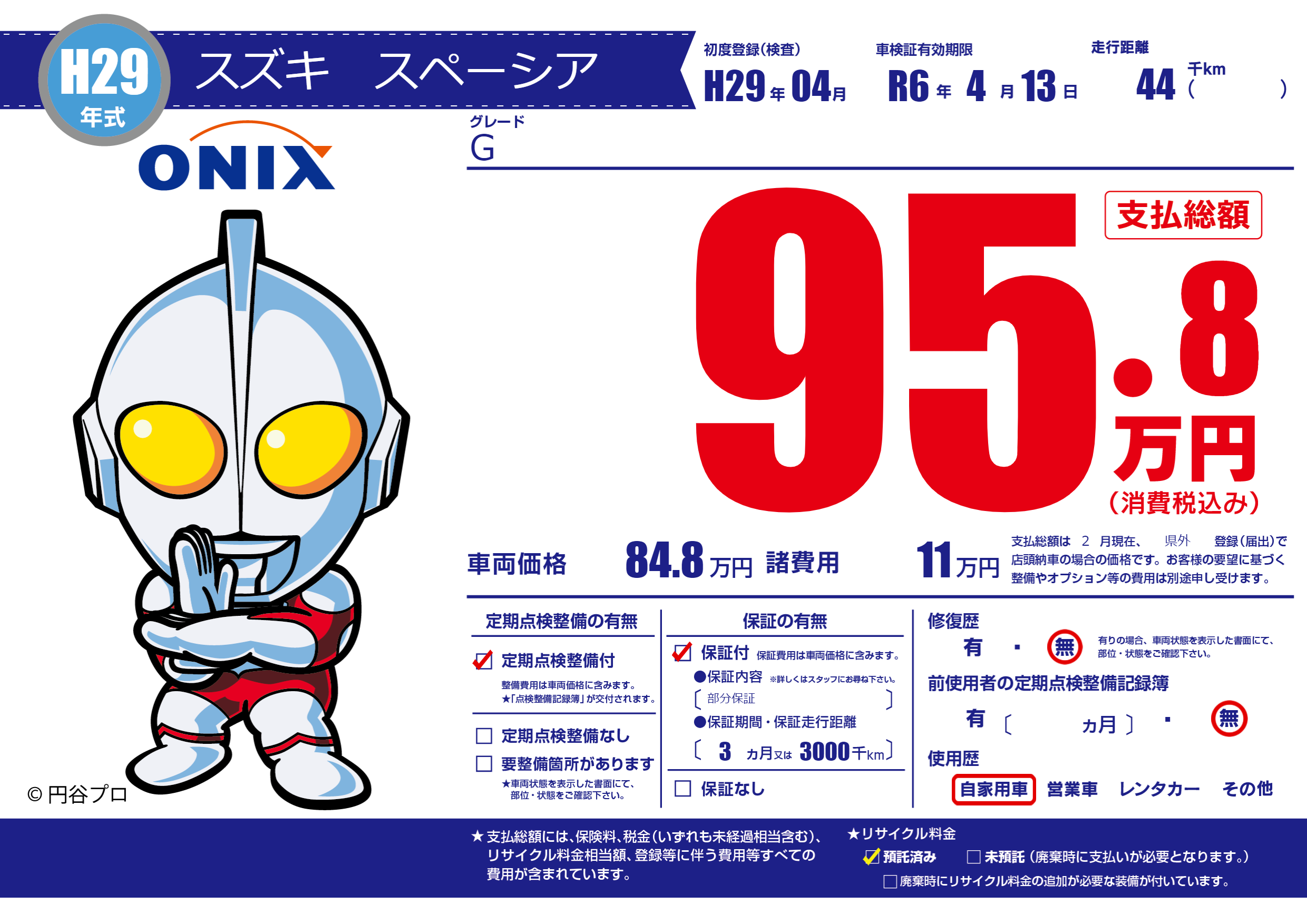 | 車名 | スズキ スペーシア | グレード ミッション 排気量 |