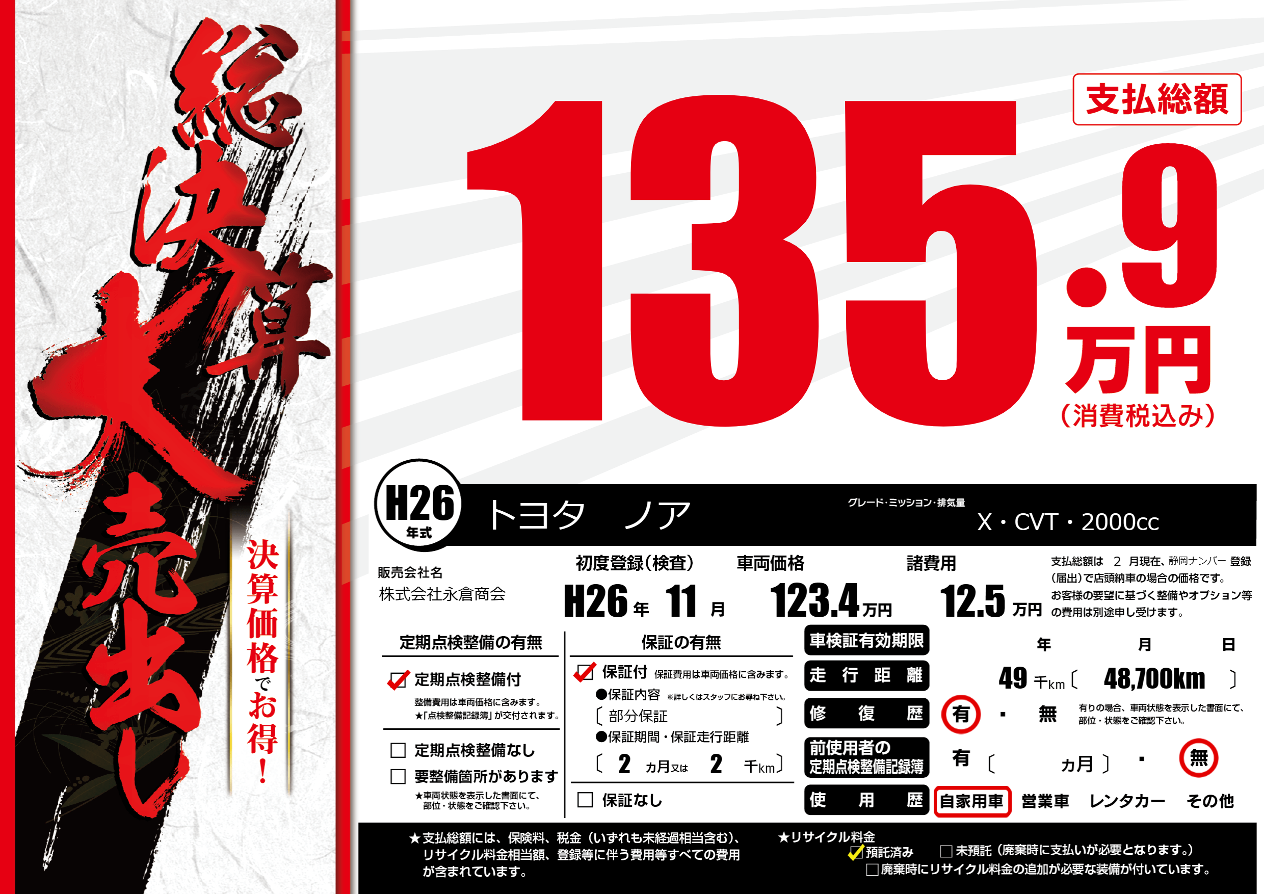 | 走行キロ | 4.9万km | 初年度登録 | H26年11月 |