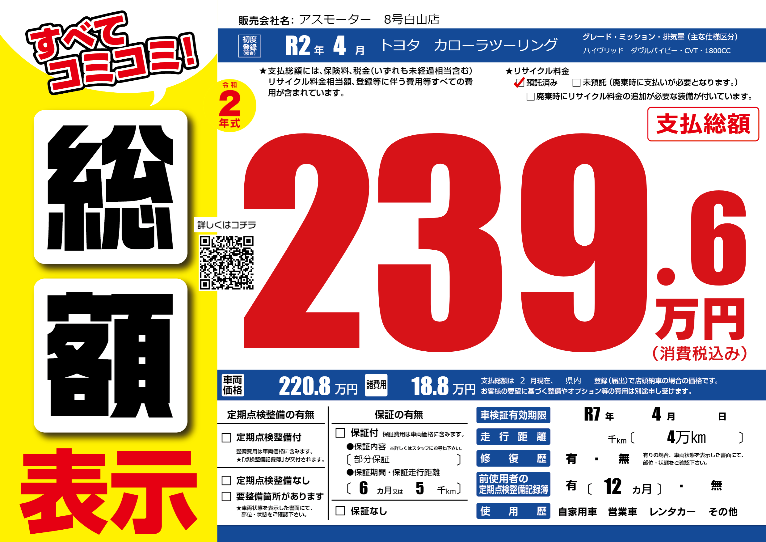 | 走行キロ | - | 初年度登録 | R2年4月 |