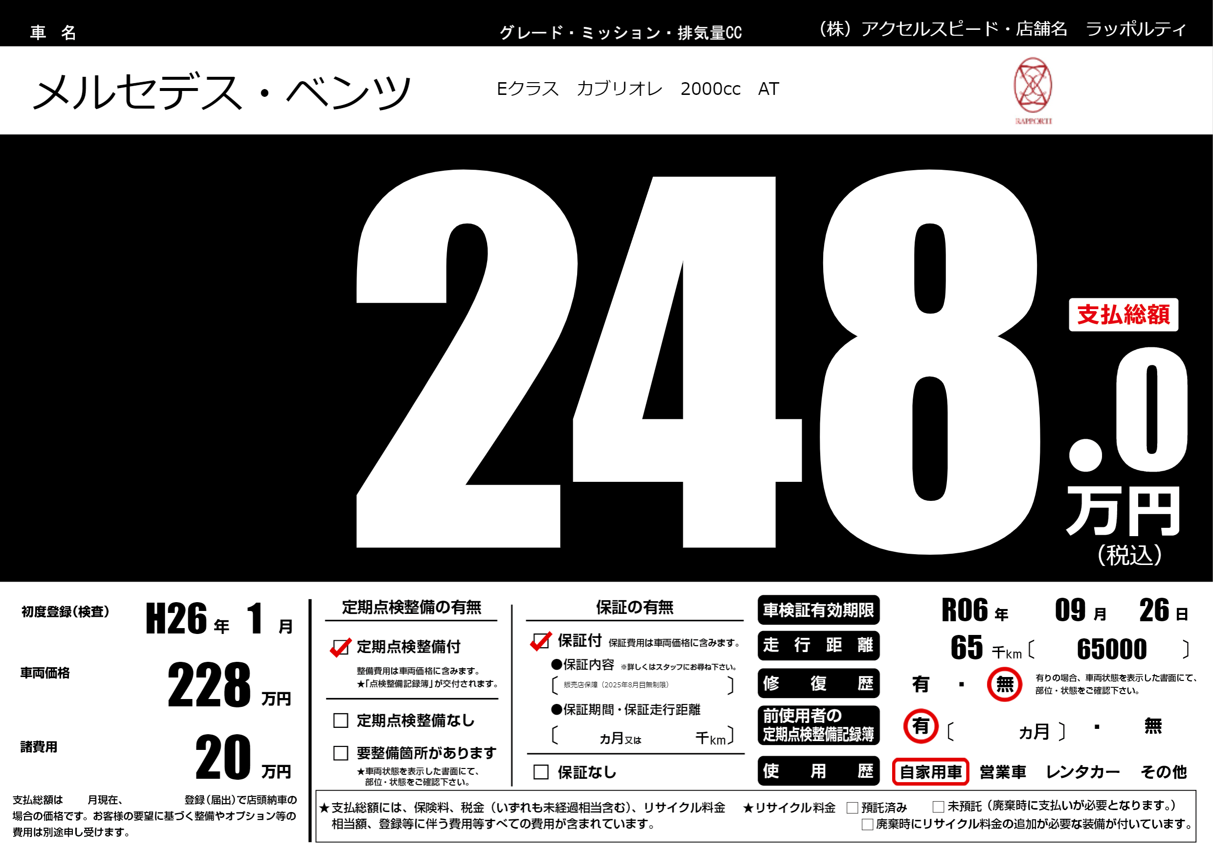| 車検制限 | R06年 09月 26日 | ||