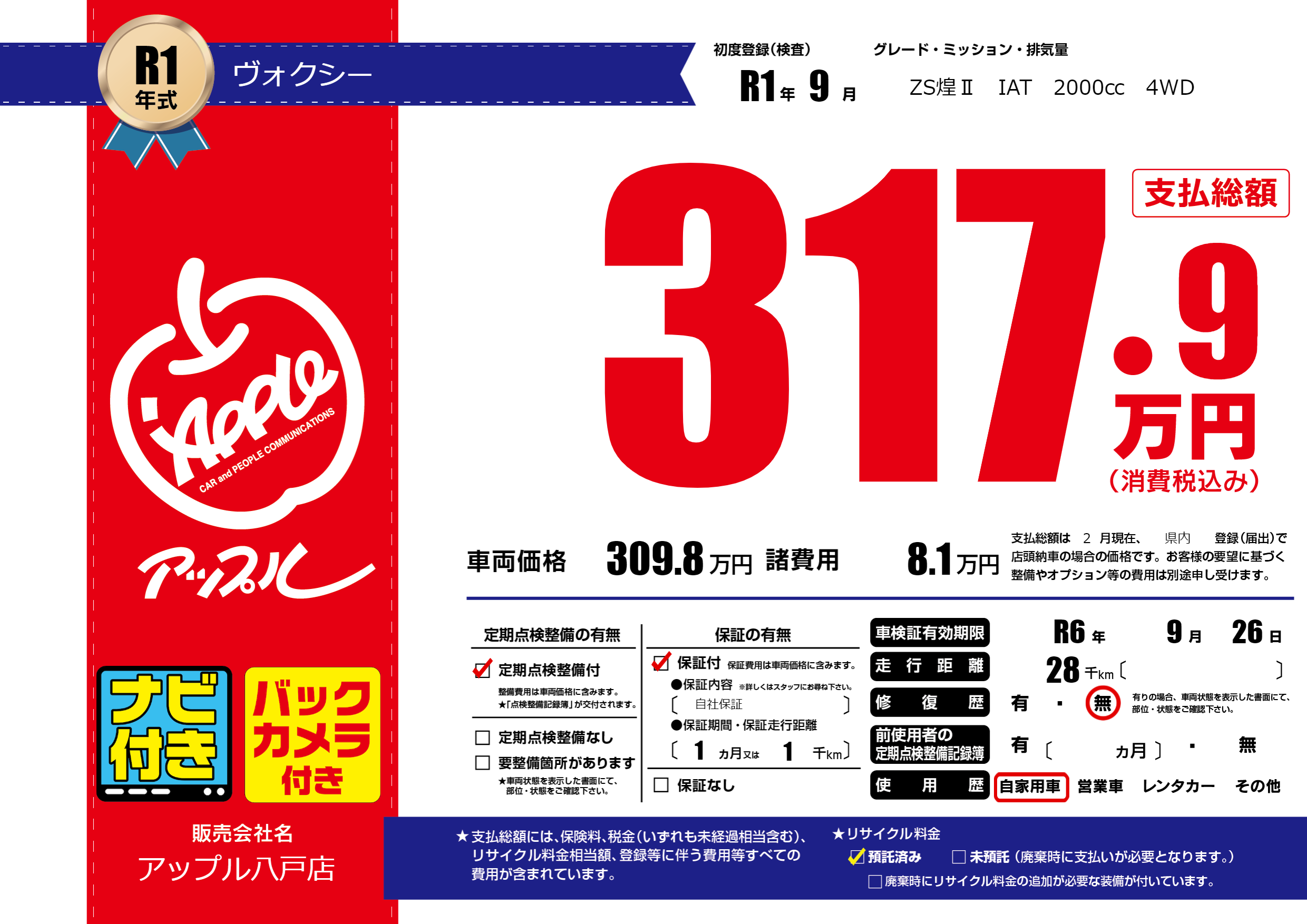 | 走行キロ | 2.8万km | 初年度登録 | R1年9月 |