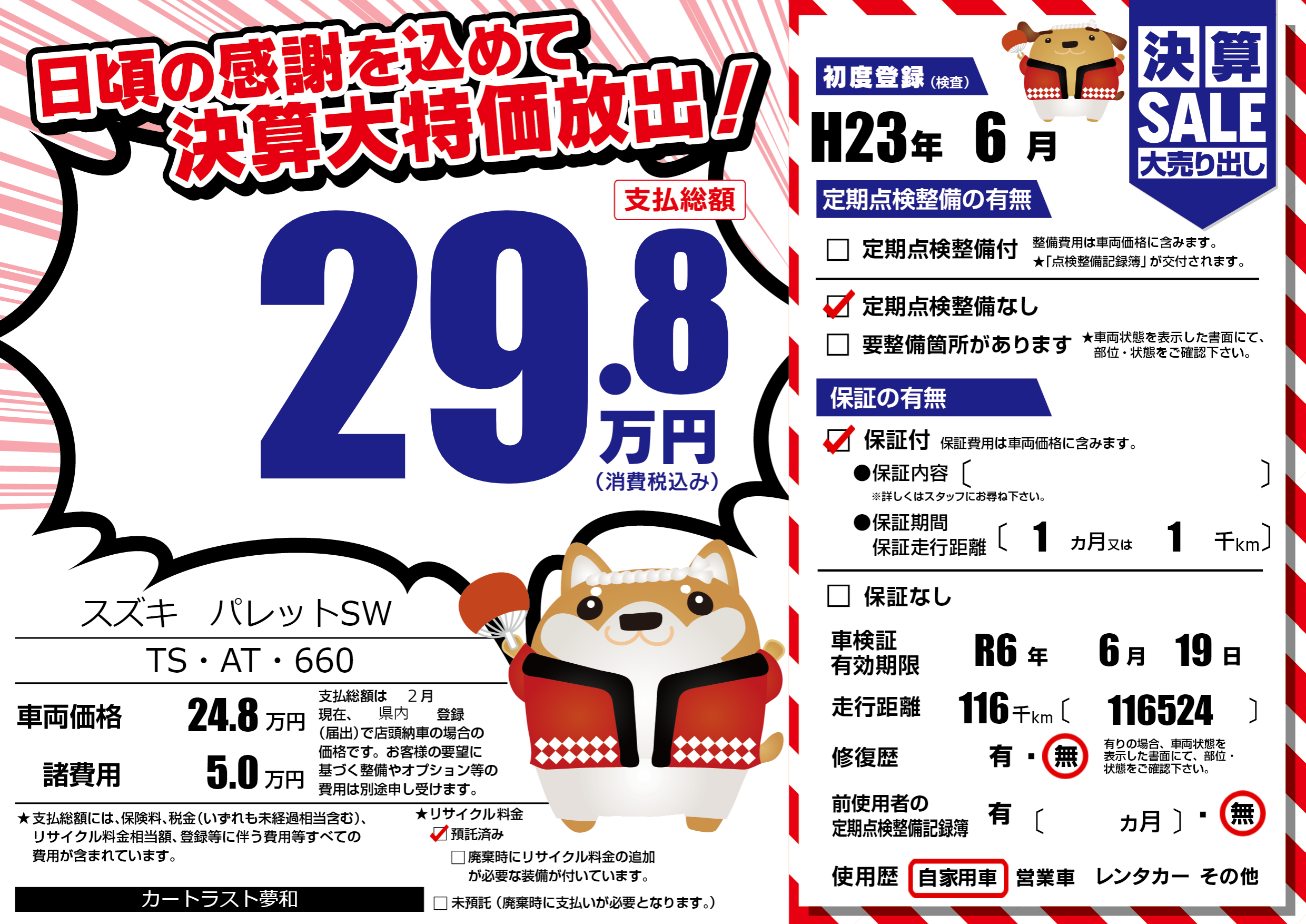 なし | 車検制限 | R6年6月19月 |