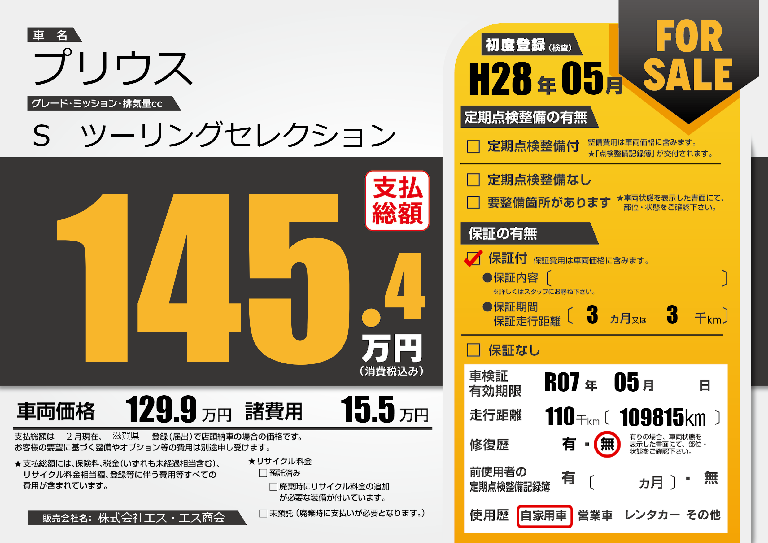| 車名 | プリウス | グレード ミッション 排気量 |