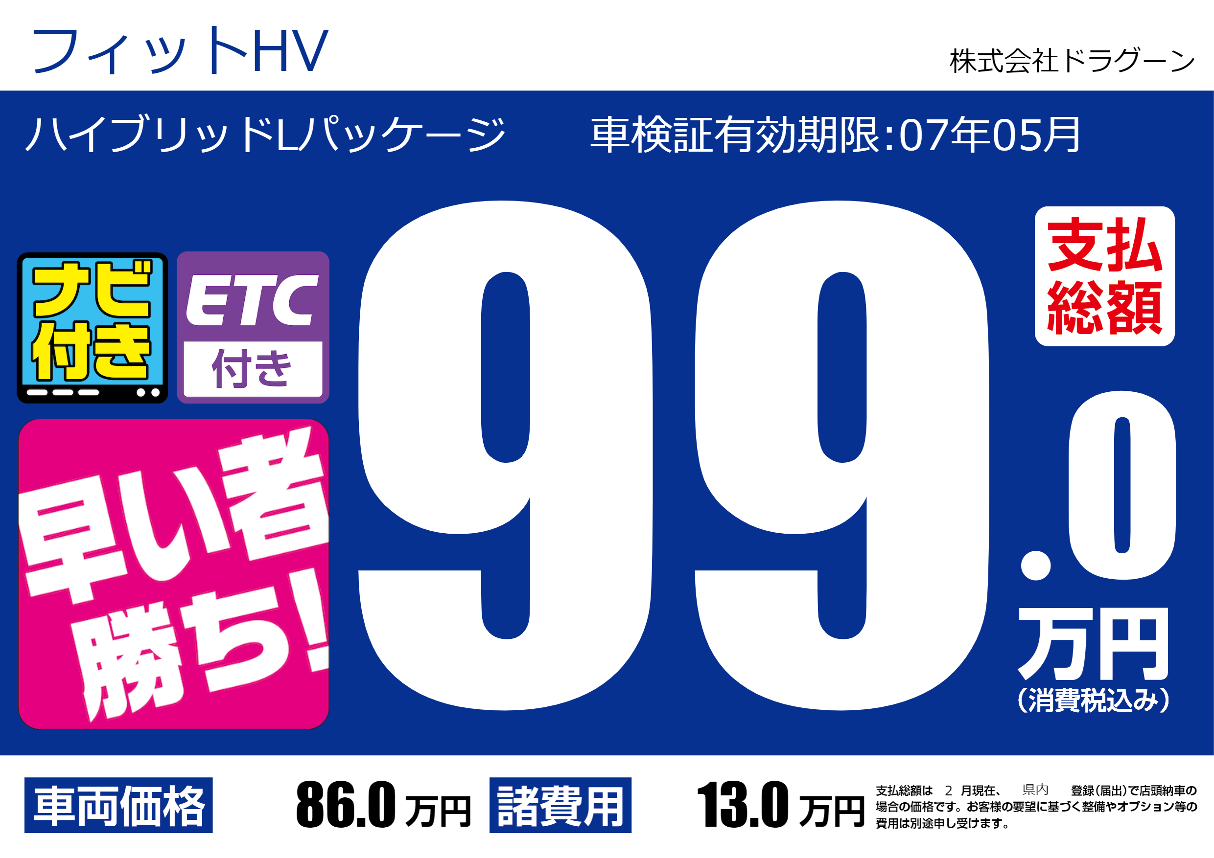 | 車検制限 | - 年 - 月 - 日 | ||