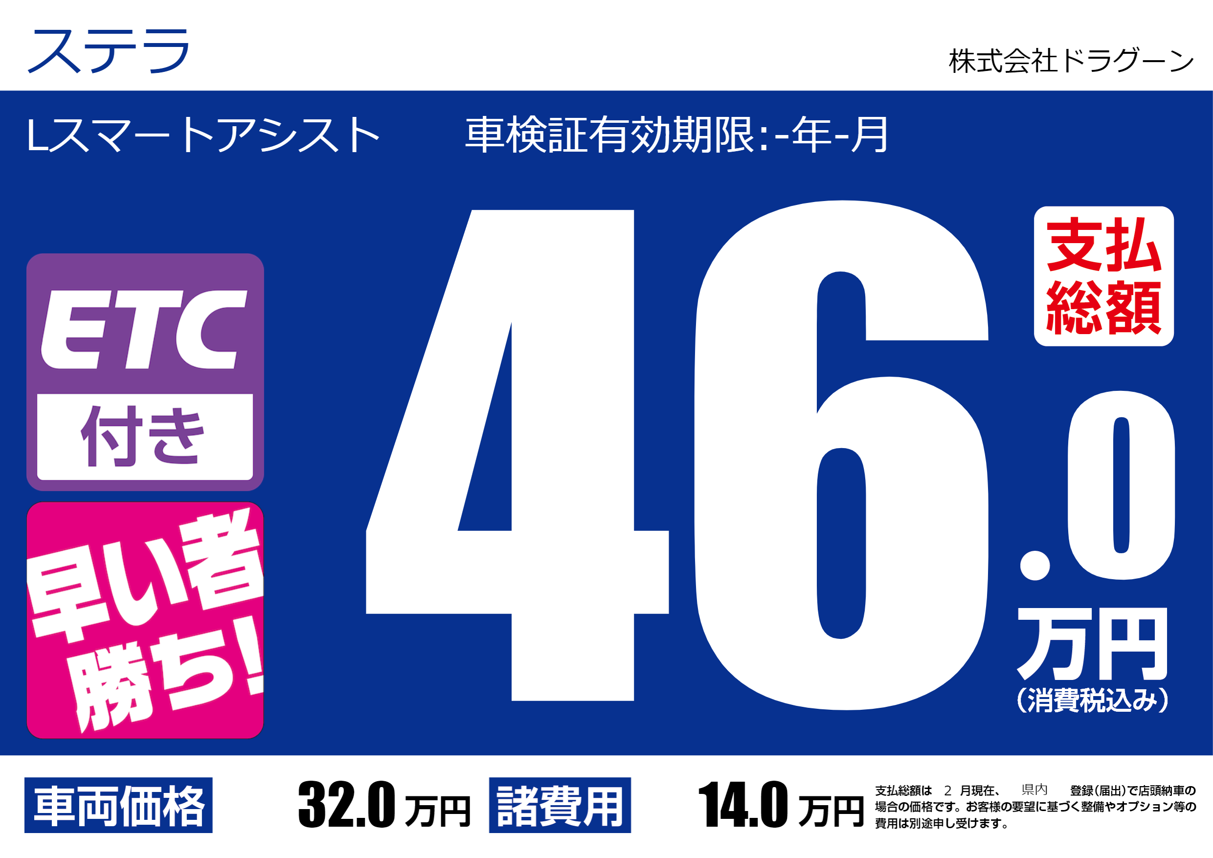 | 車検制限 | - 年 - 月 - 日 | ||