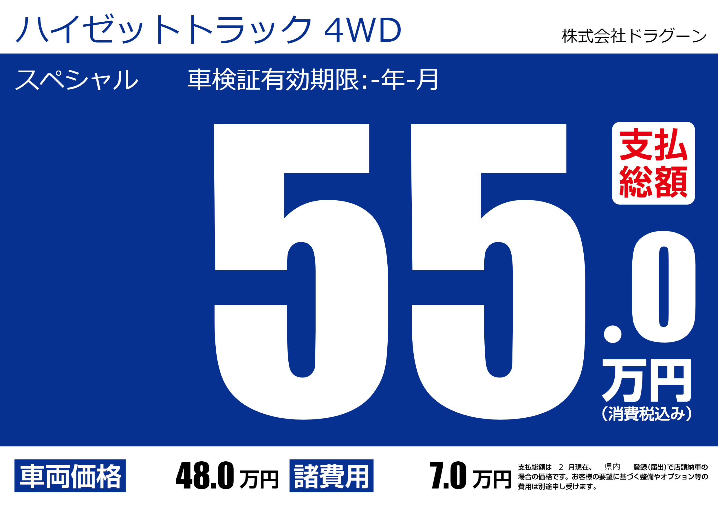 | 車名 | ハイゼットトラック 4WD | グレード ミッション 排気量 |