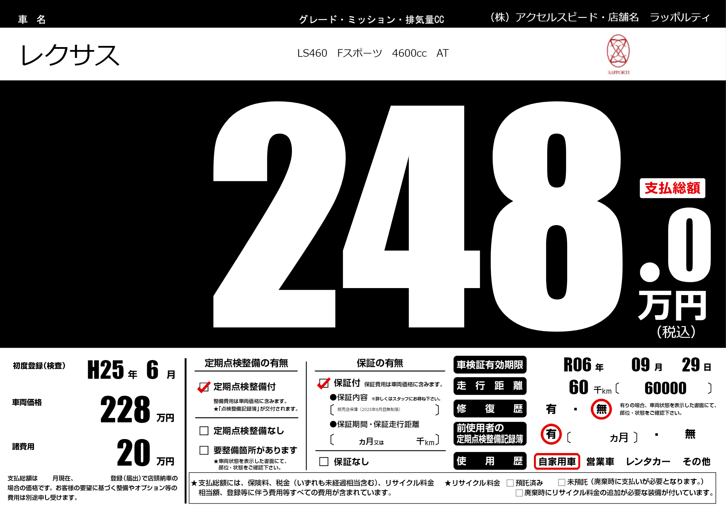 | 車名 | レクサス | グレード ミッション 排気量 |