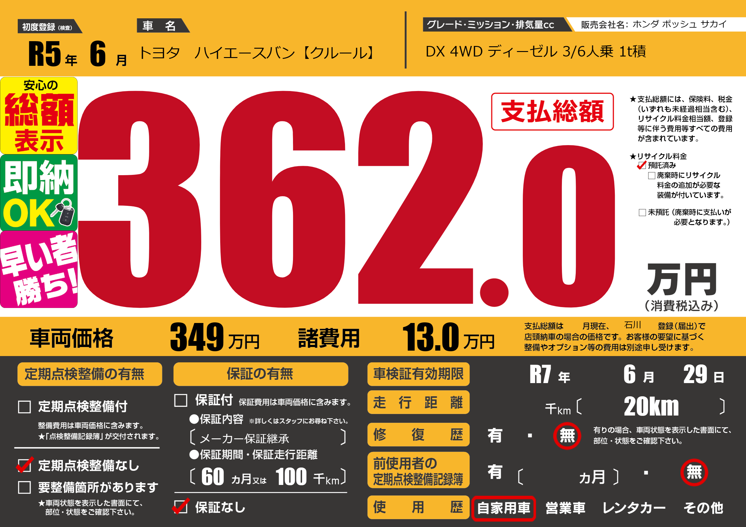 ジョイカル 金沢泉本町店/ホンダ ポッシュ サカイの展示車をすべて見る