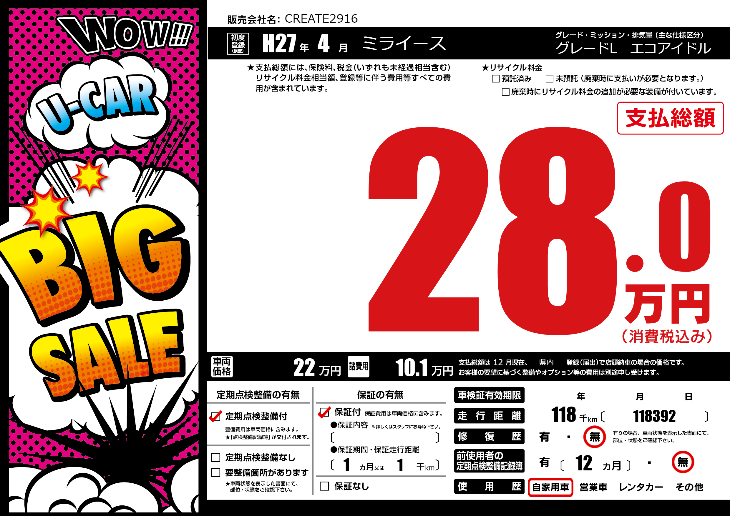 | 定期点検整備 | 定期点検整備あり | ||