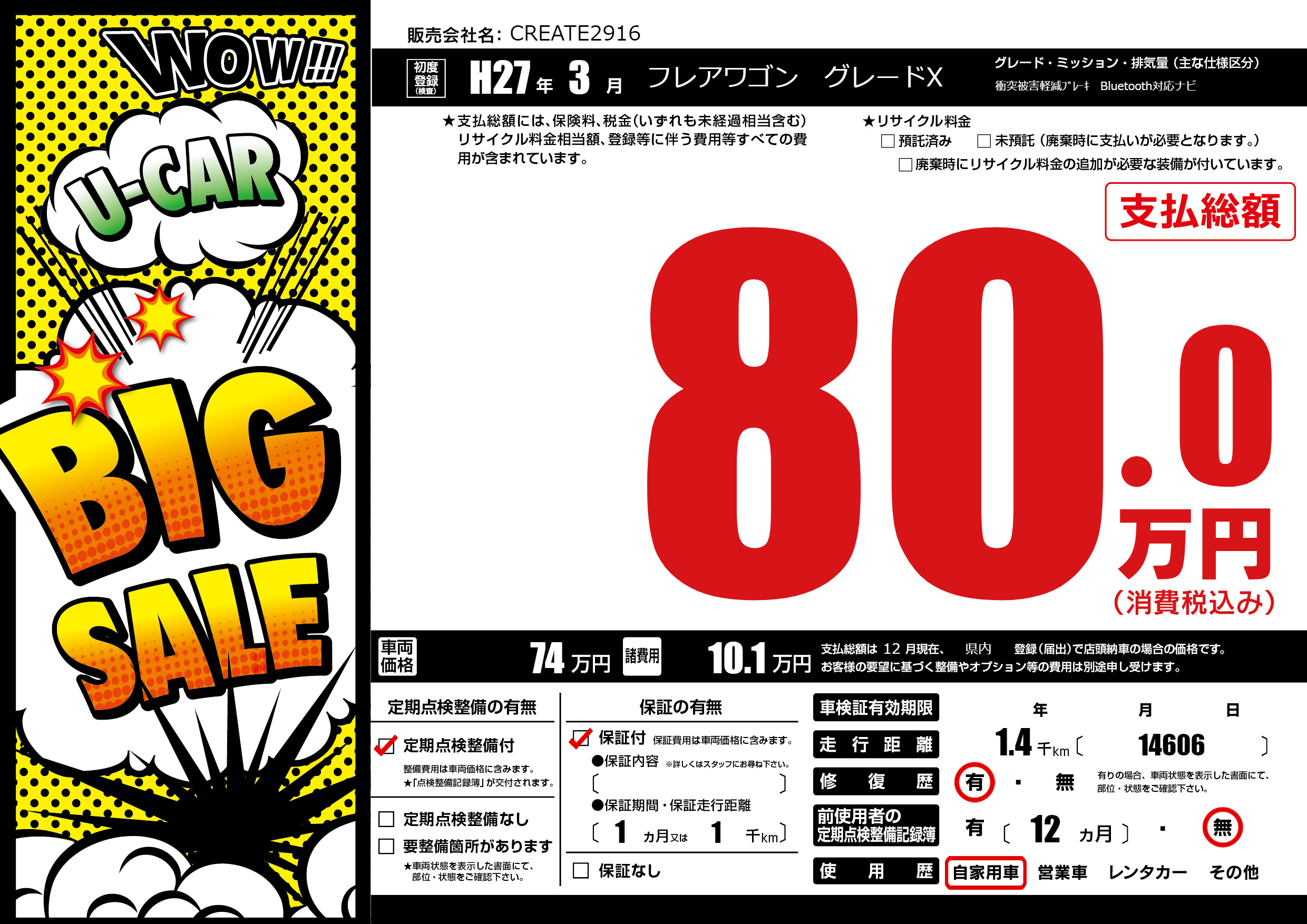 | 定期点検整備 | 定期点検整備あり | ||