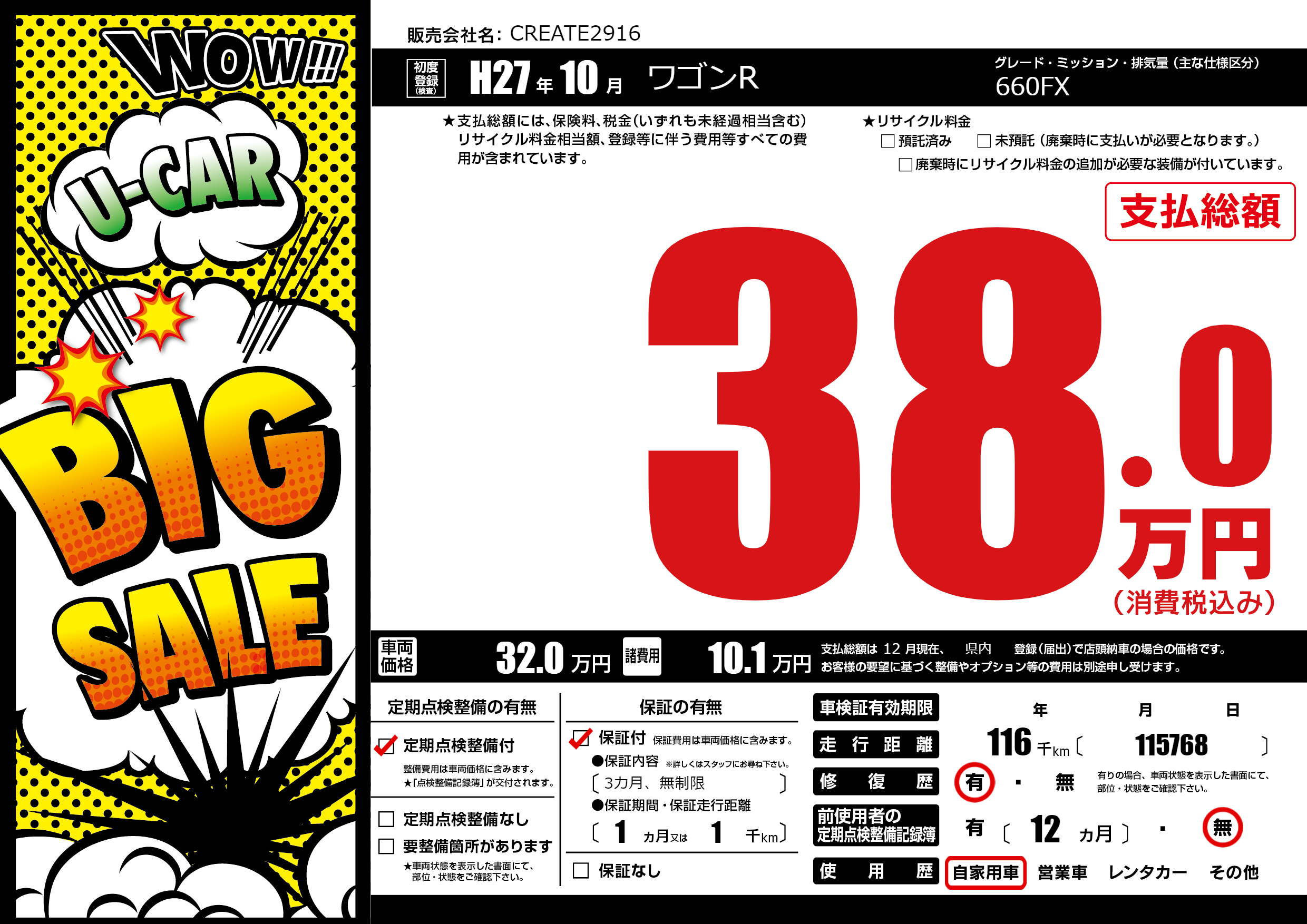 | 走行キロ | 11.6万km | 初年度登録 | H27年10月 |