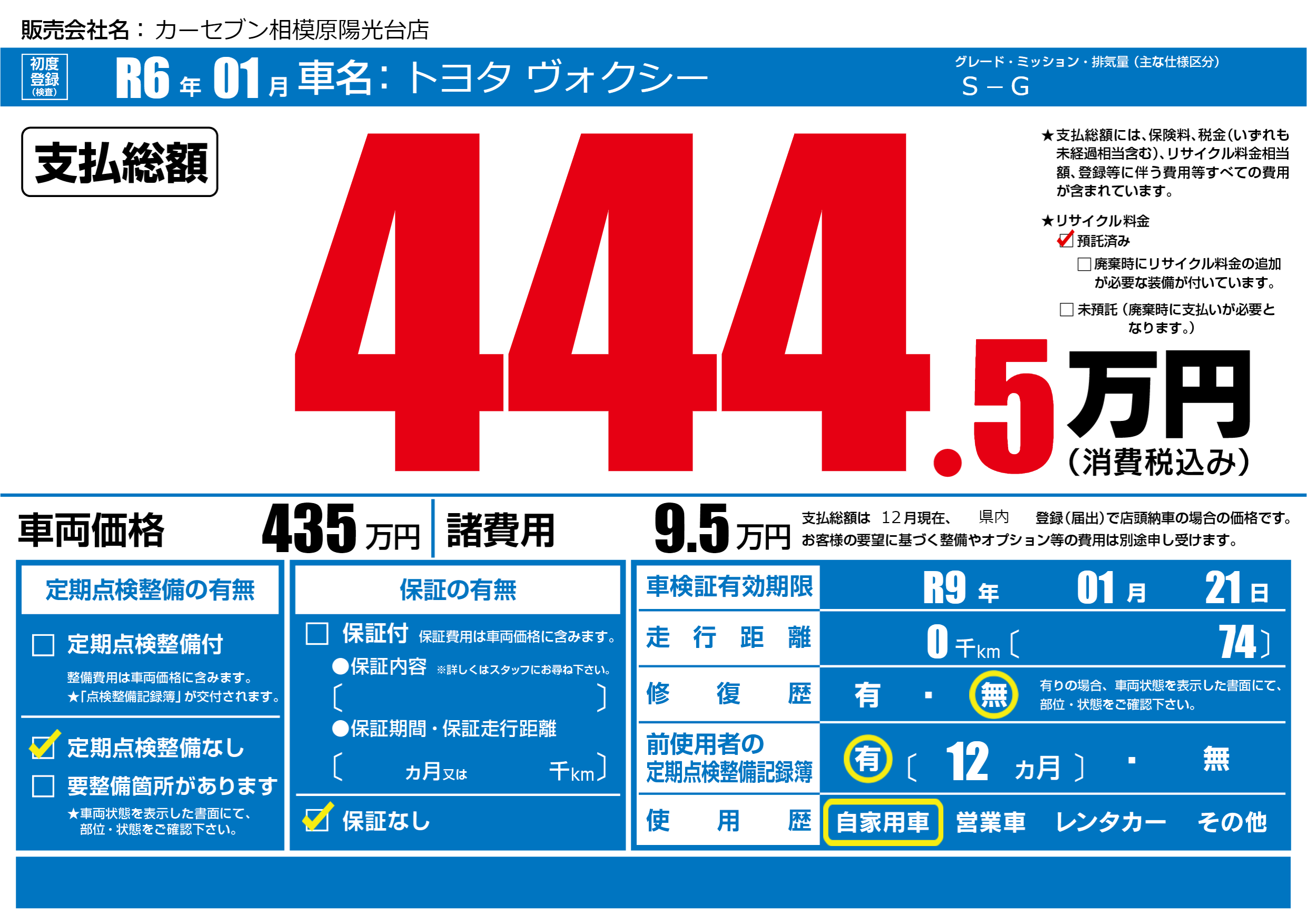 なし | 車検制限 | R9年01月21月 |