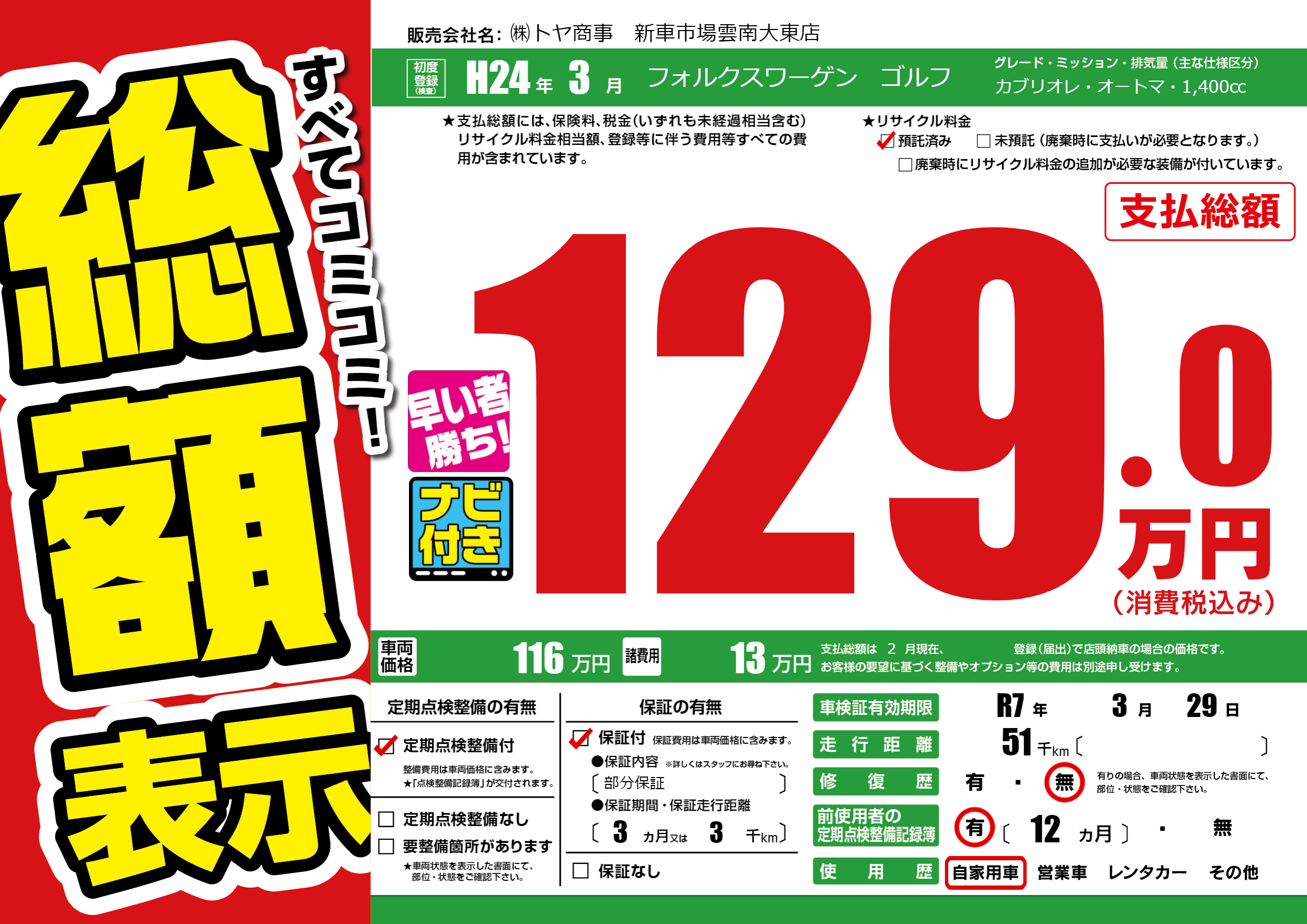 ㈱トヤ商事 新車市場雲南大東店の展示車
