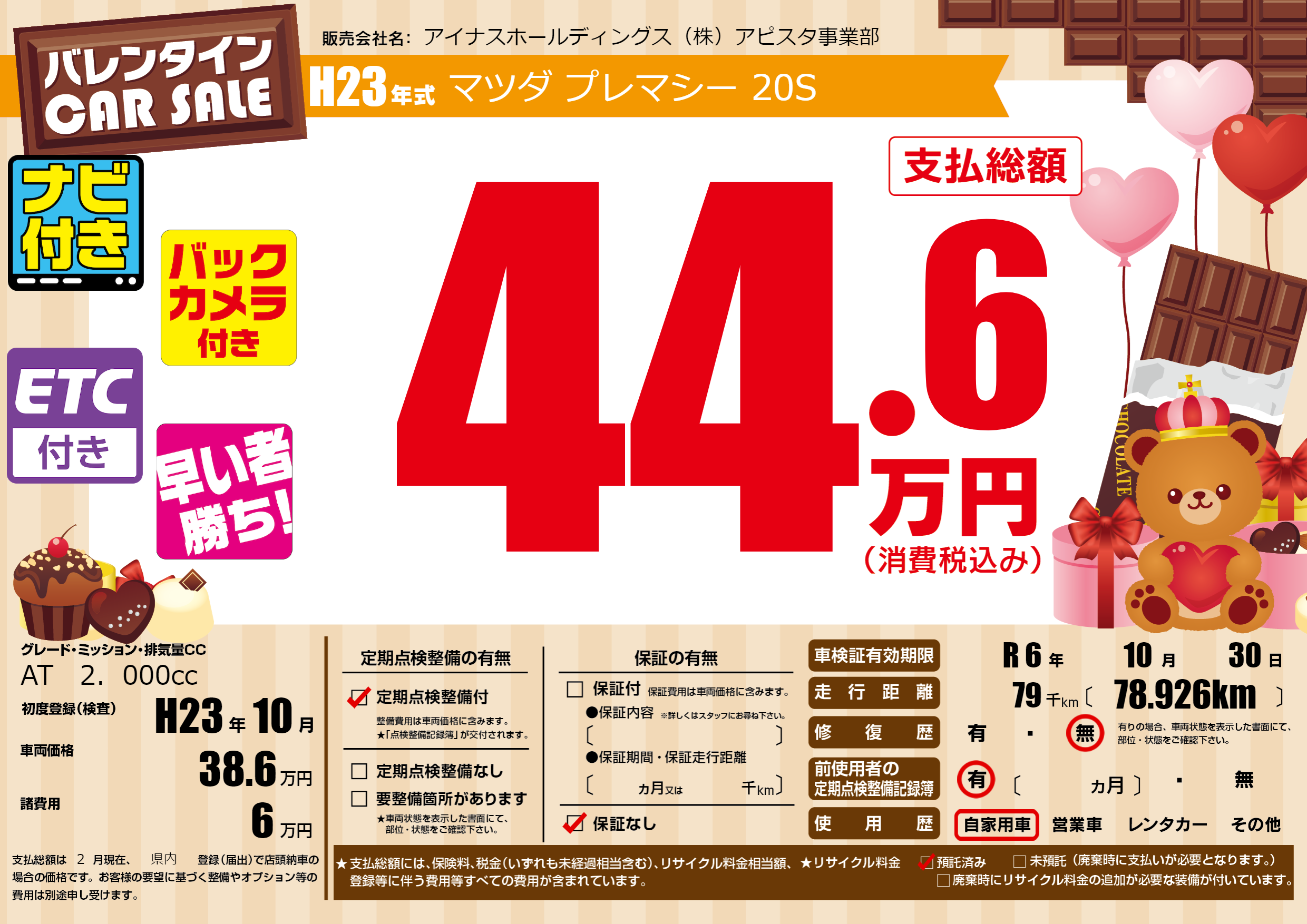 | 車名 | マツダ プレマシー 20S | グレード ミッション 排気量 |