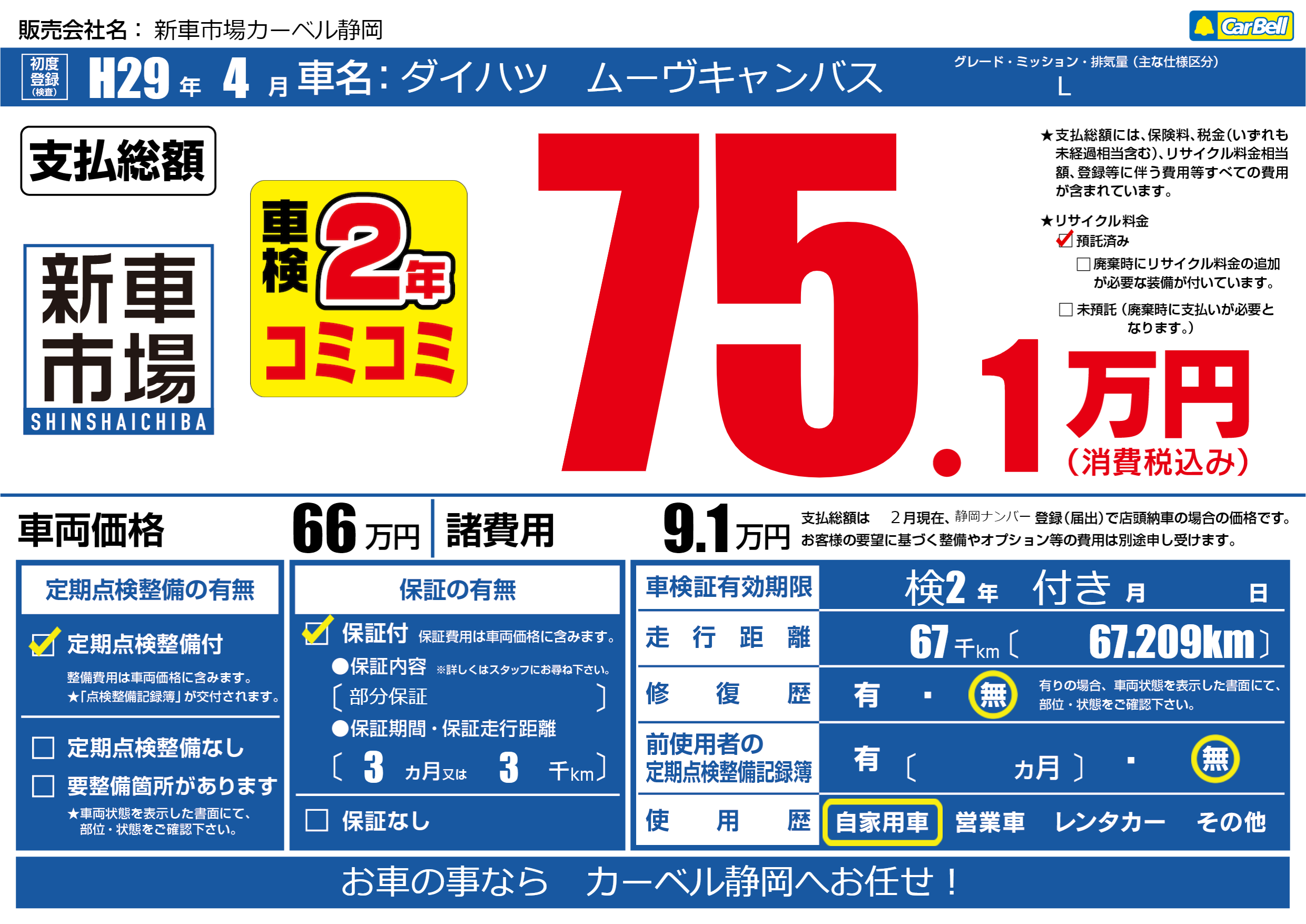 | 車検制限 | 検2年 付き月 - 日 | ||