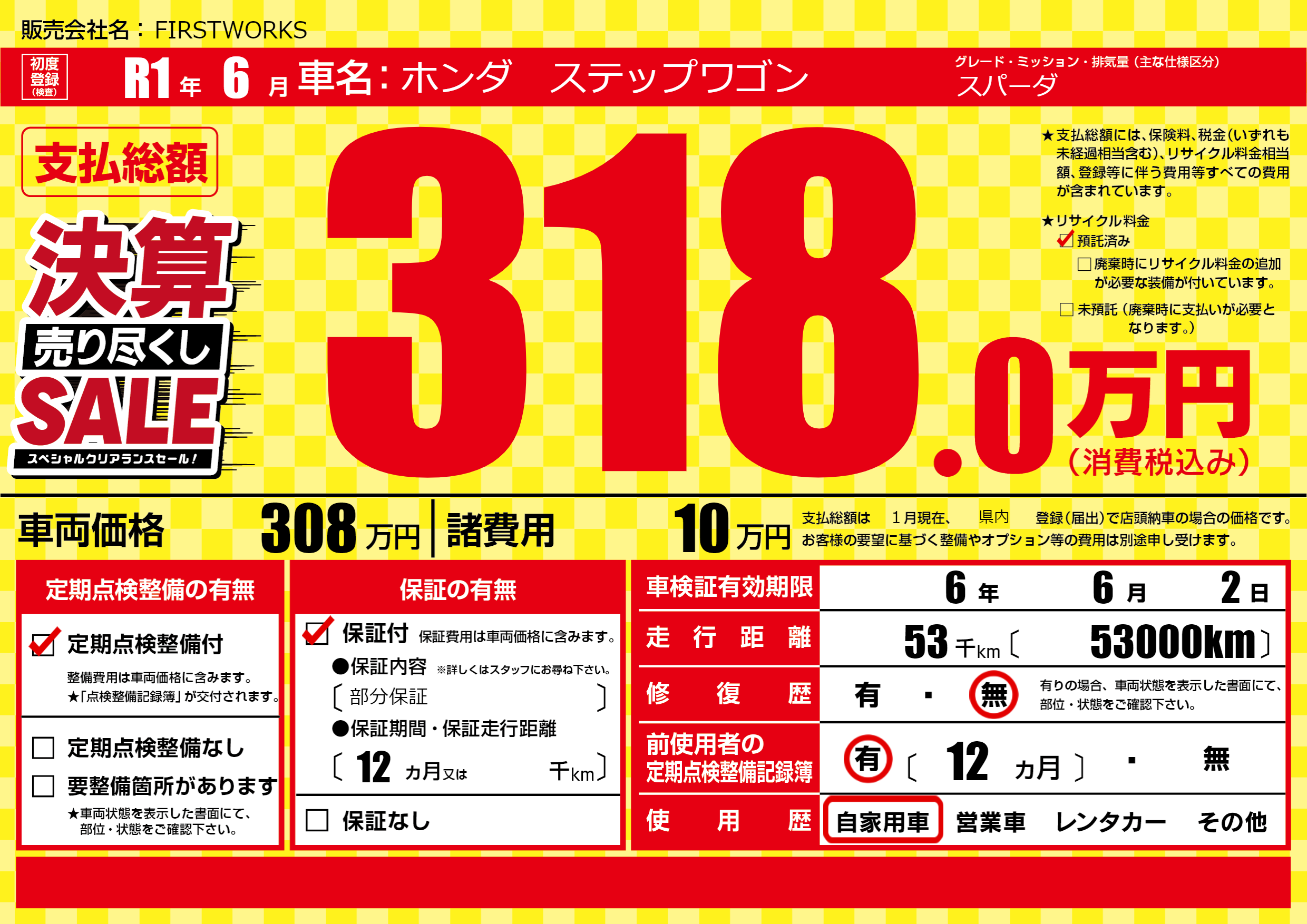 | 走行キロ | 5.3万km | 初年度登録 | R1年6月 |